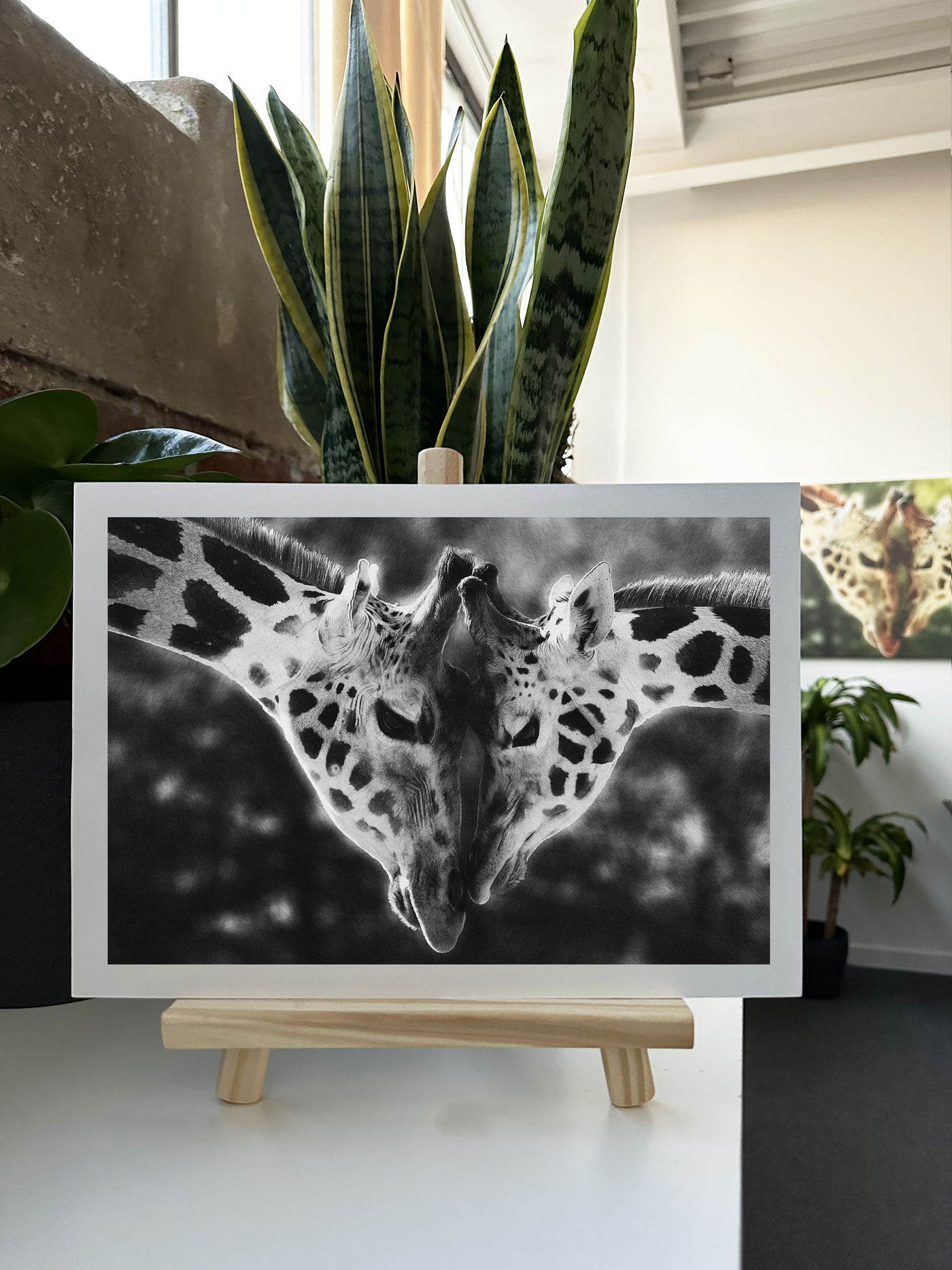 Giraffes Embrace - Monochrome Fine Art Print - Wildlife Category