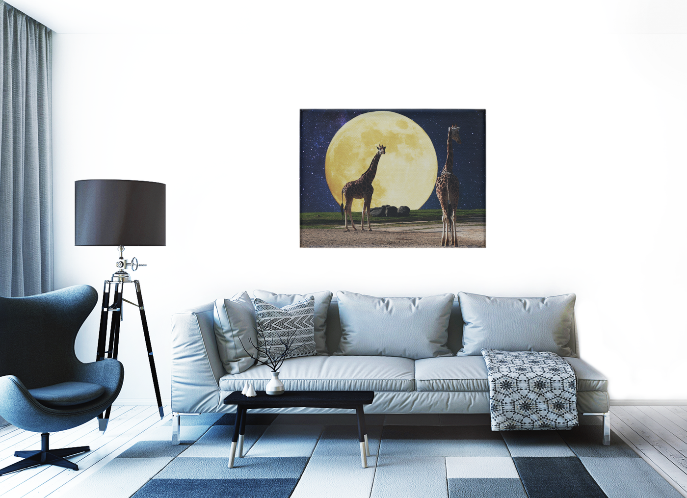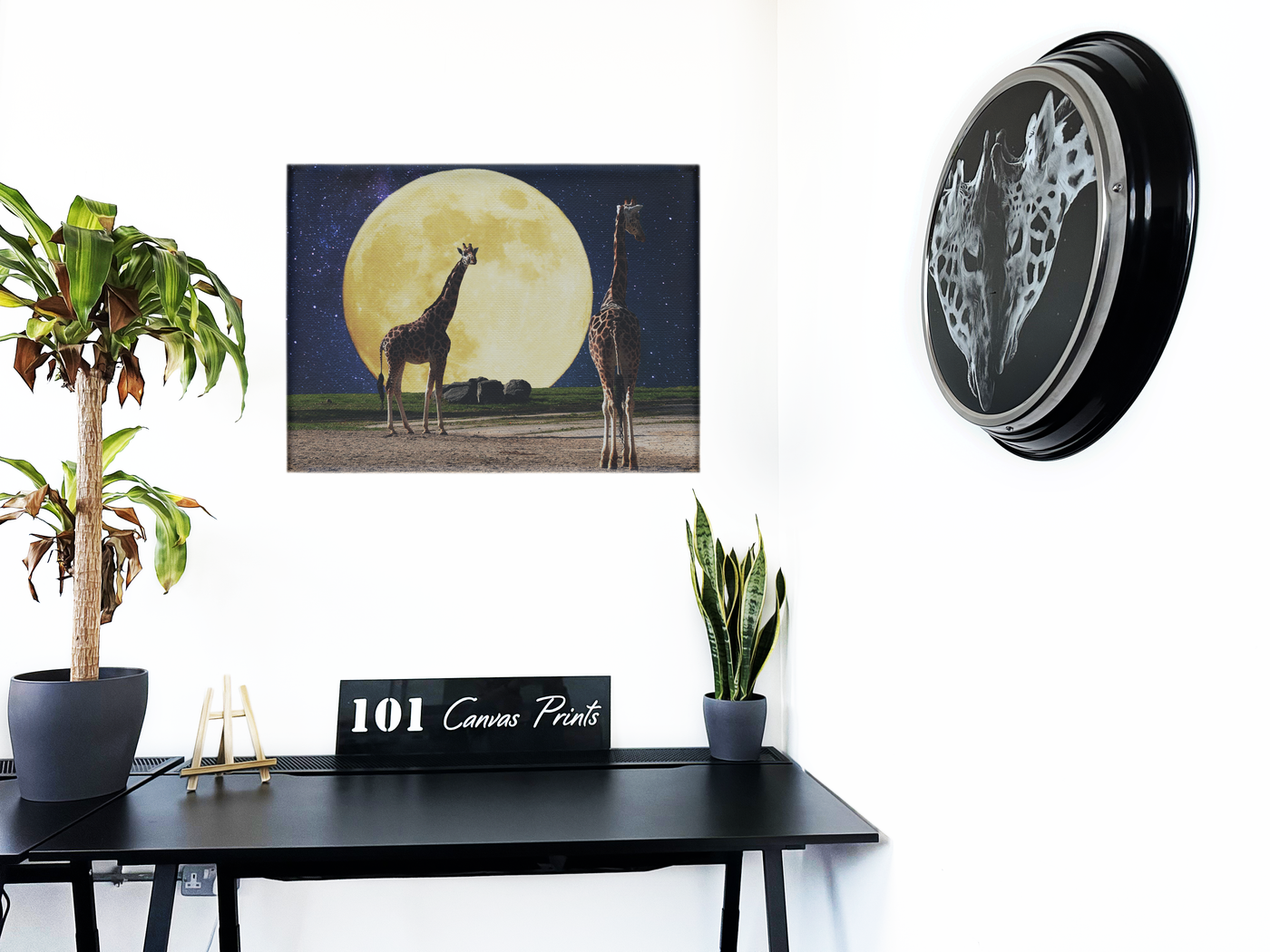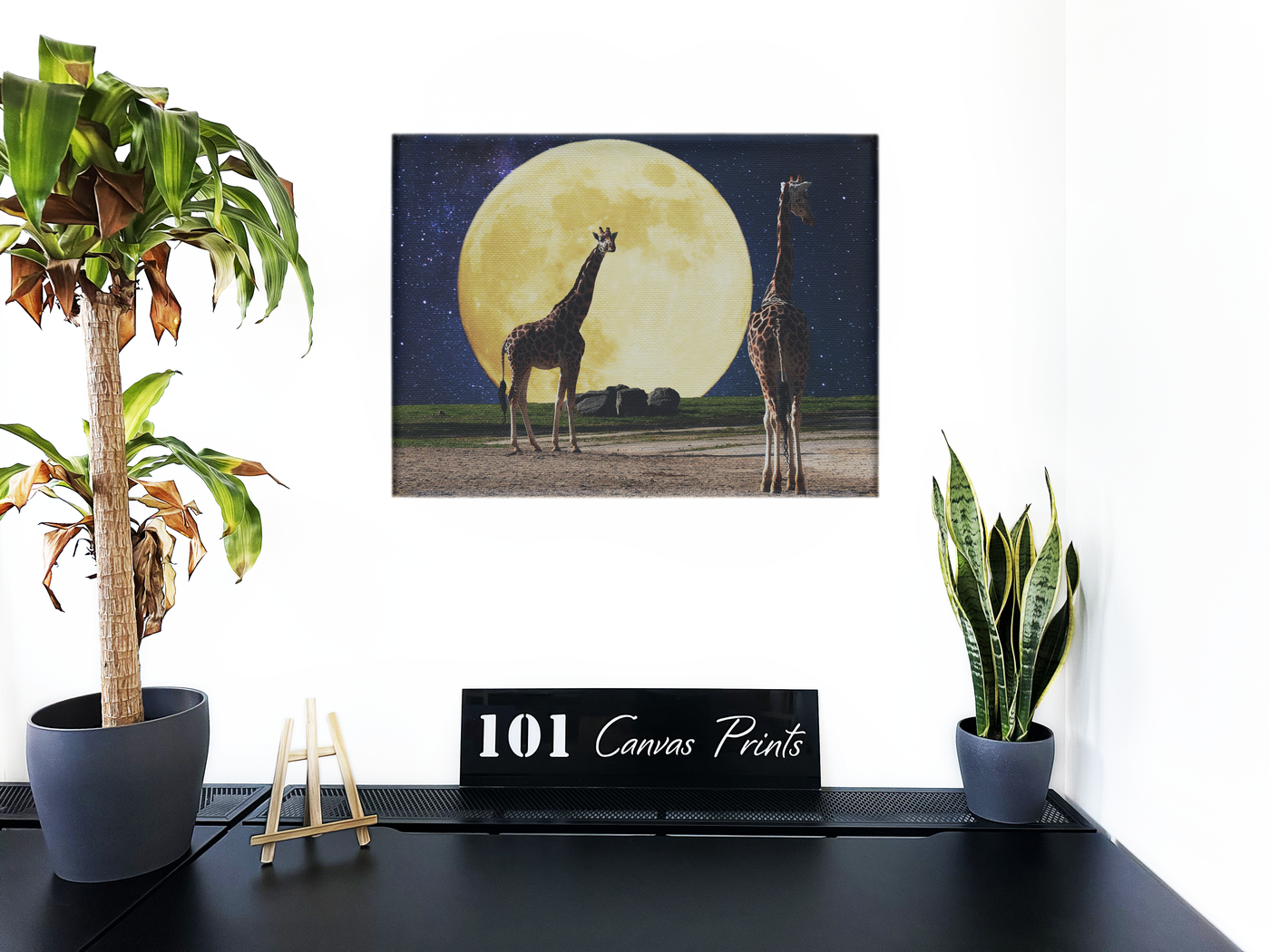 Giraffes Under The Moon - Canvas Print - Rare Edition Category