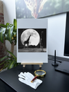Printed on Fine Art paper, this image takes on a particularly dreamy quality. The texture of the Fine Art print softens the contrast between the dark silhouettes and the bright moon, enhancing the overall atmospheric effect. The matte finish of the Fine Art paper also helps to reduce glare, allowing viewers to appreciate the subtle details in the moon's surface and the starry sky. This Monochrome Fine Art print would be a stunning addition to a bedroom, creating a serene and otherworldly ambiance, or in a living room as a conversation-starting piece that brings a touch of African magic and celestial wonder to any space.