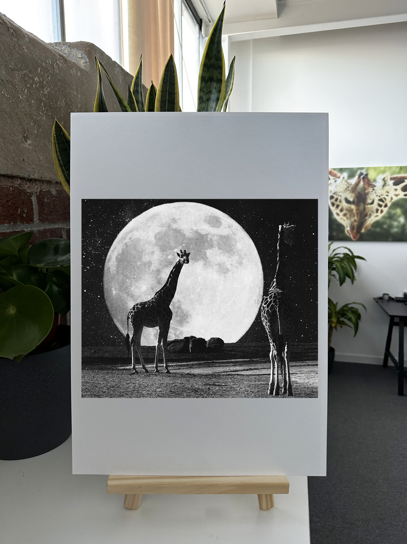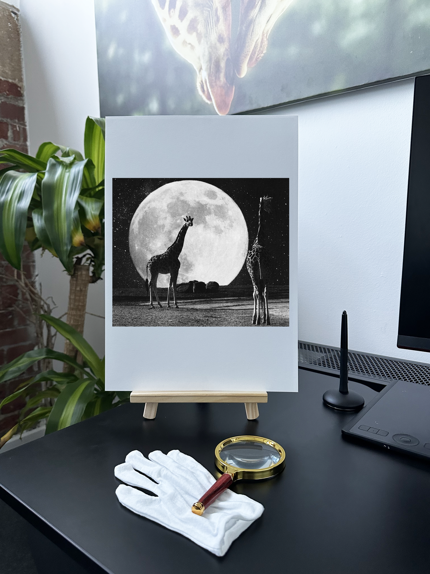Giraffes Under The Moon - Monochrome Fine Art Print - Rare Edition Category