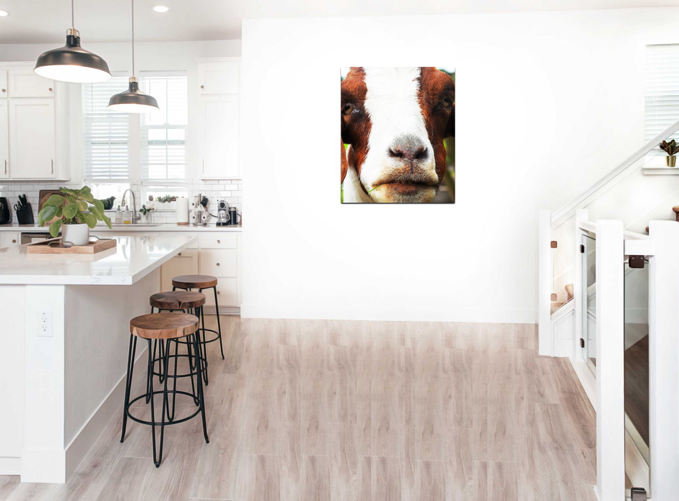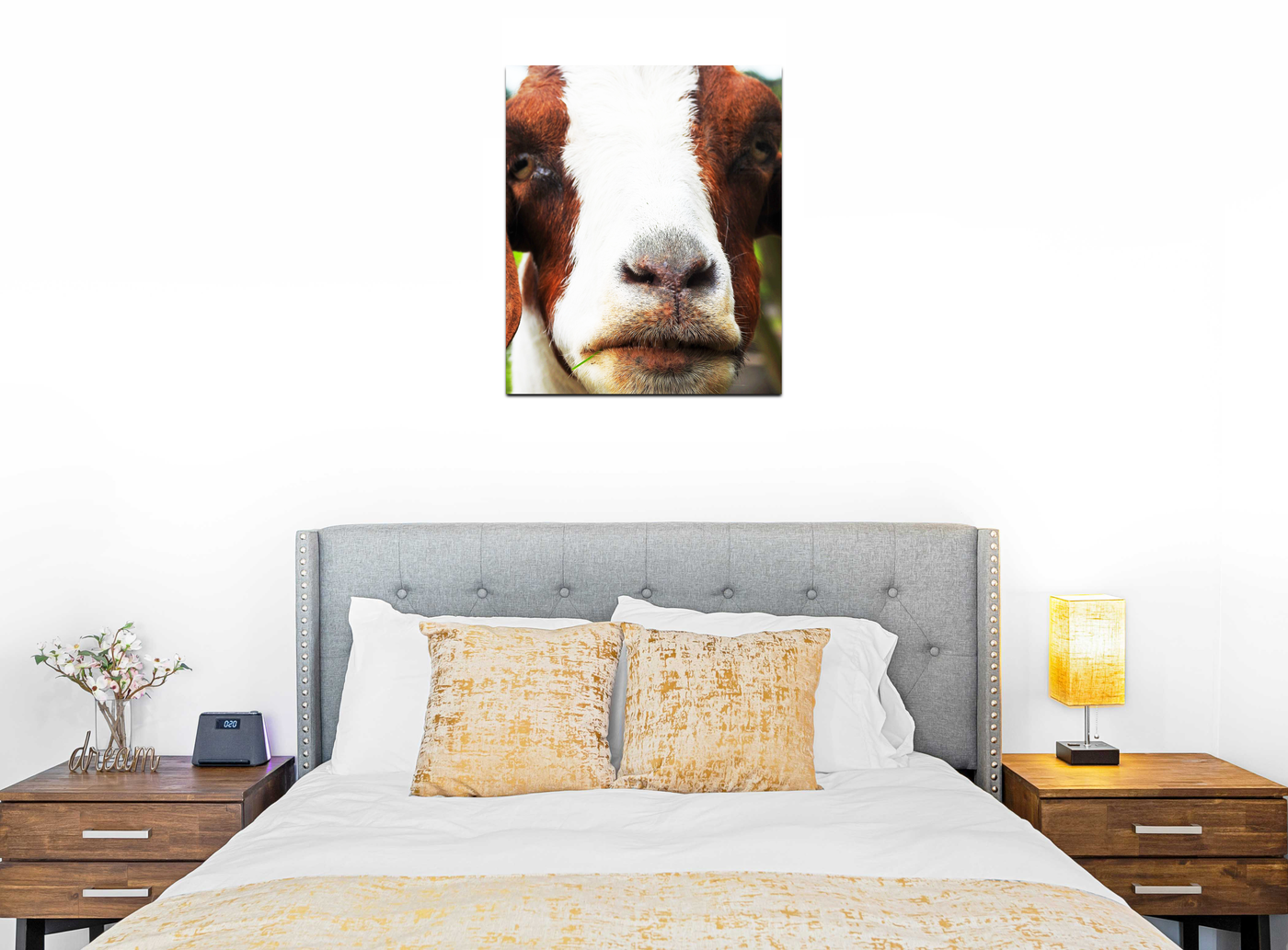The Macro Goats Head is a Acrylic art print of a brown & white fur goat's head on a solid Light background. The goat's detailed proud facial expression is the focal point of the picture, accentuating this distinctive features to stunning effect, while the vibrant atmosphere captured in the surrounding composition make this a stylish and tasteful addition to any room.