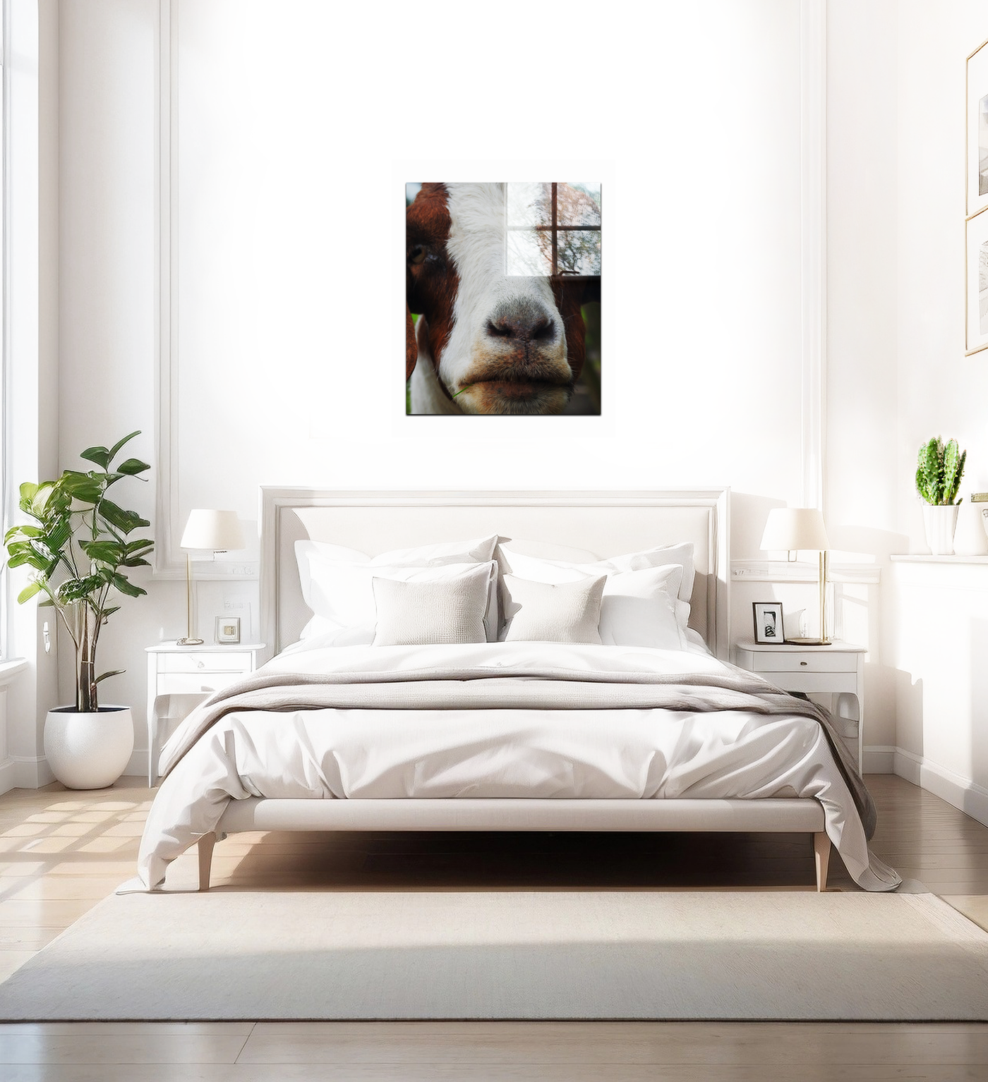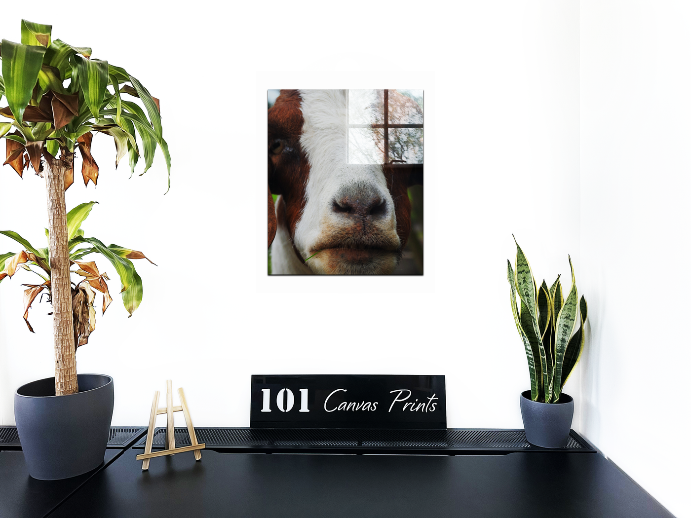 The Macro Goats Head is a Acrylic art print of a brown & white fur goat's head on a solid Light background. The goat's detailed proud facial expression is the focal point of the picture, accentuating this distinctive features to stunning effect, while the vibrant atmosphere captured in the surrounding composition make this a stylish and tasteful addition to any room.
