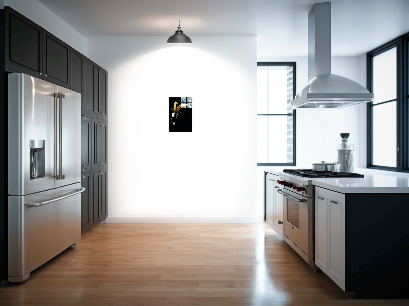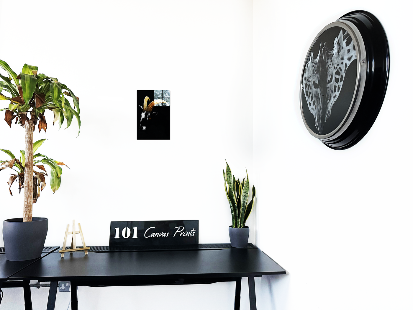 The Goats Head is a Acrylic print of a black goat's head on a solid black background. The goat's long curved horns are the focal point of the picture, accentuating this distinctive feature to stunning effect, while the dark brooding atmosphere captured in the surrounding composition make this a stylish and tasteful addition to any room.