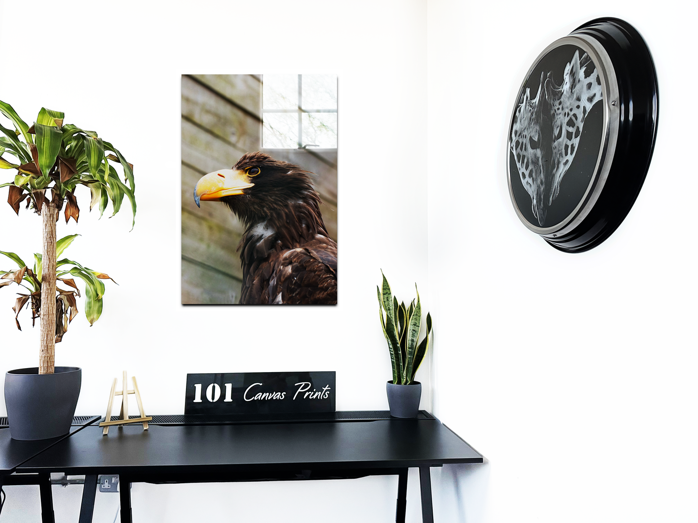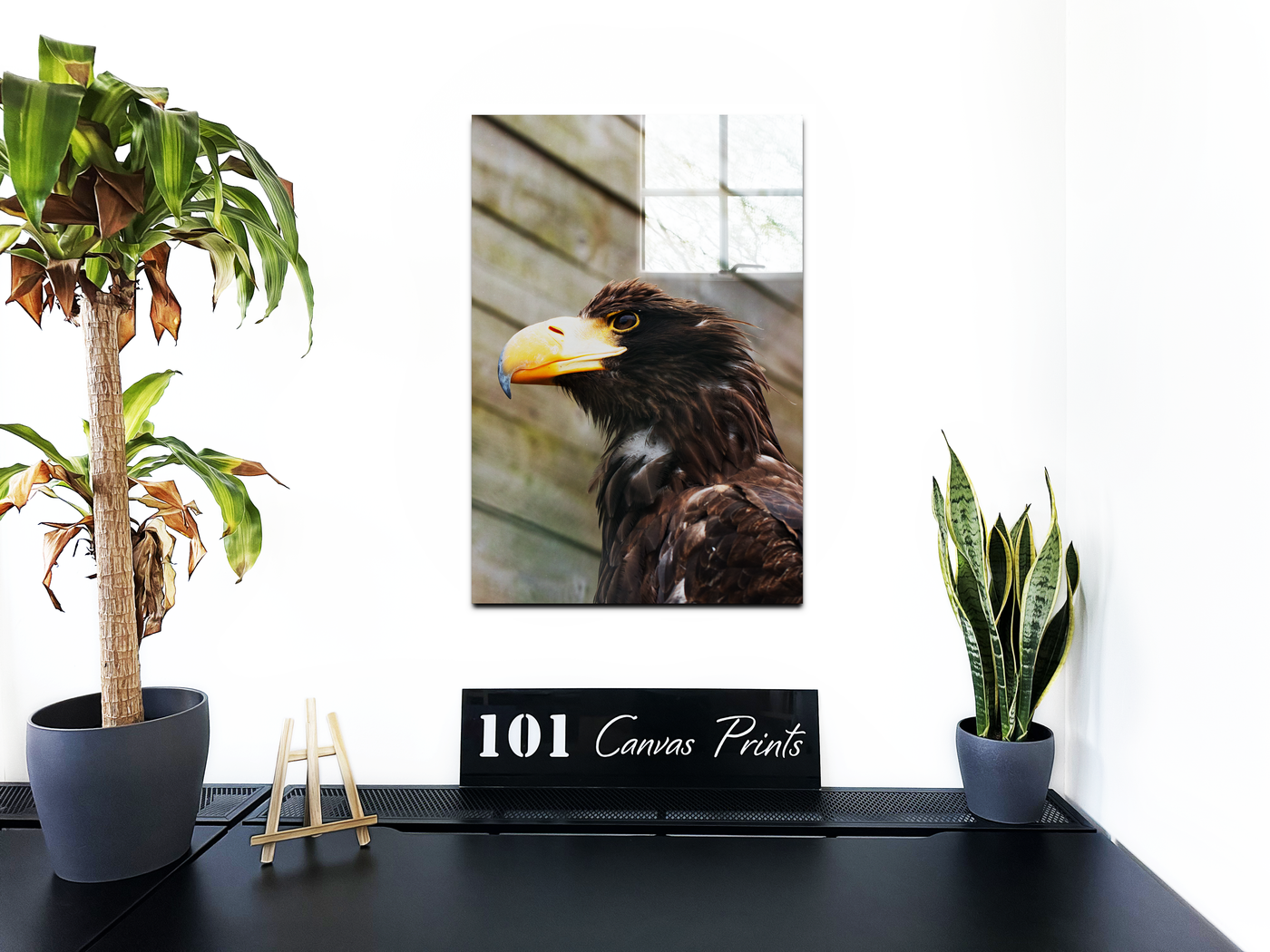 In this special Acrylic print, the 101 Canvas Prints wildlife photography team have captured the majestic beauty of the Golden Eagle in a tight side profile image, shot using a macro lens in breathtaking detail.
