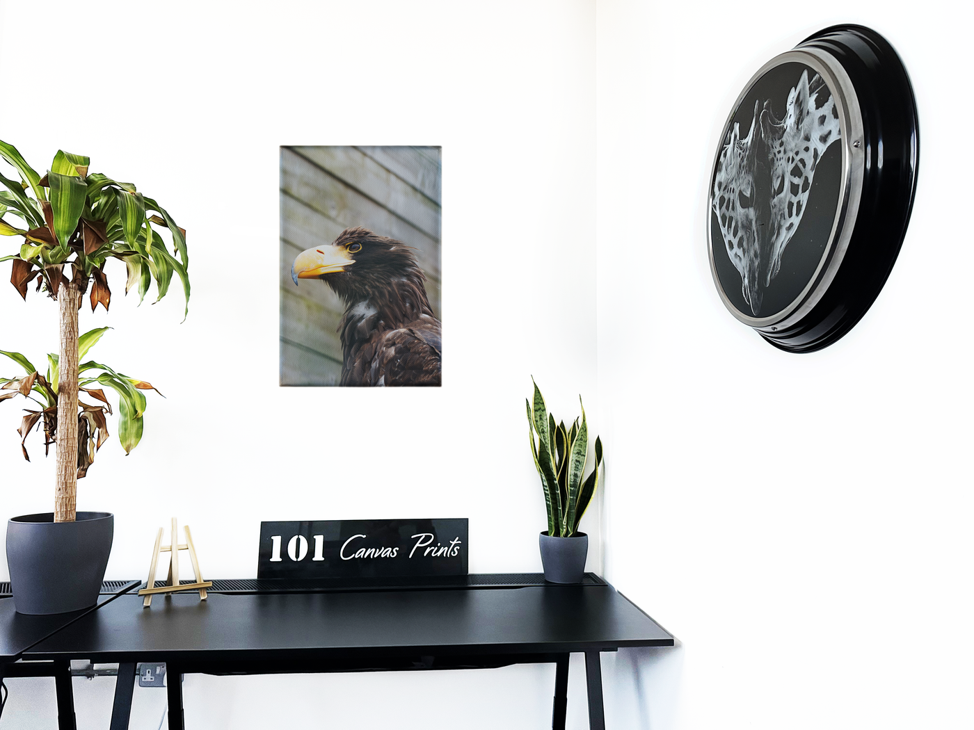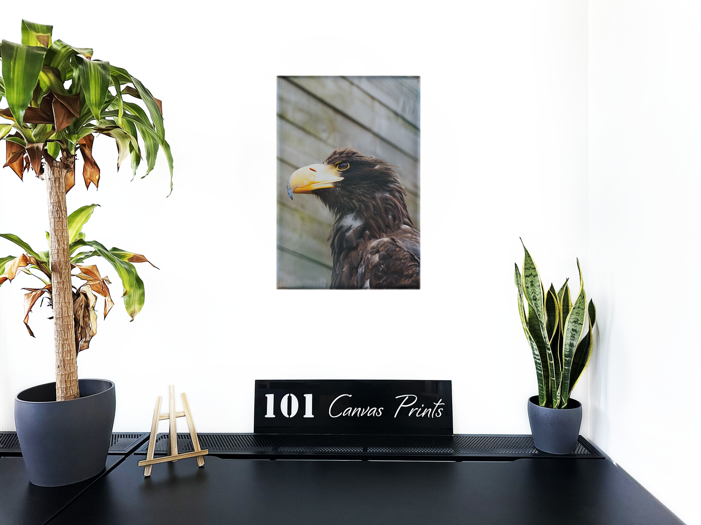 In this special Canvas Art print, the 101 Canvas Prints wildlife photography team have captured the majestic beauty of the Golden Eagle in a tight side profile image, shot using a macro lens in breathtaking detail.
