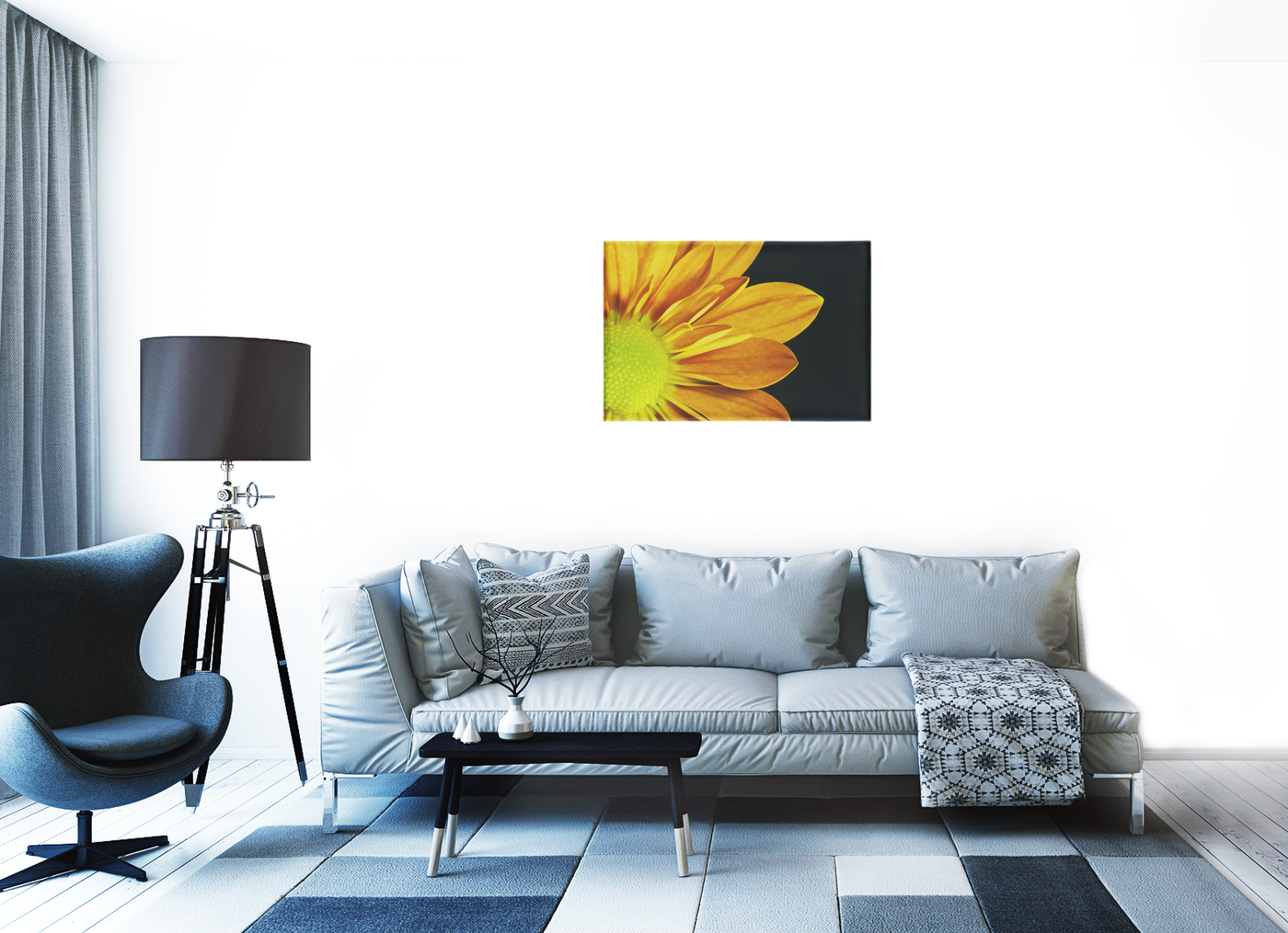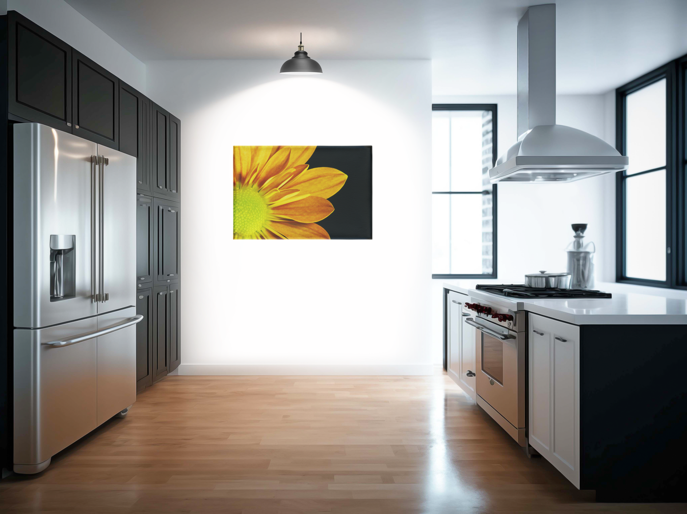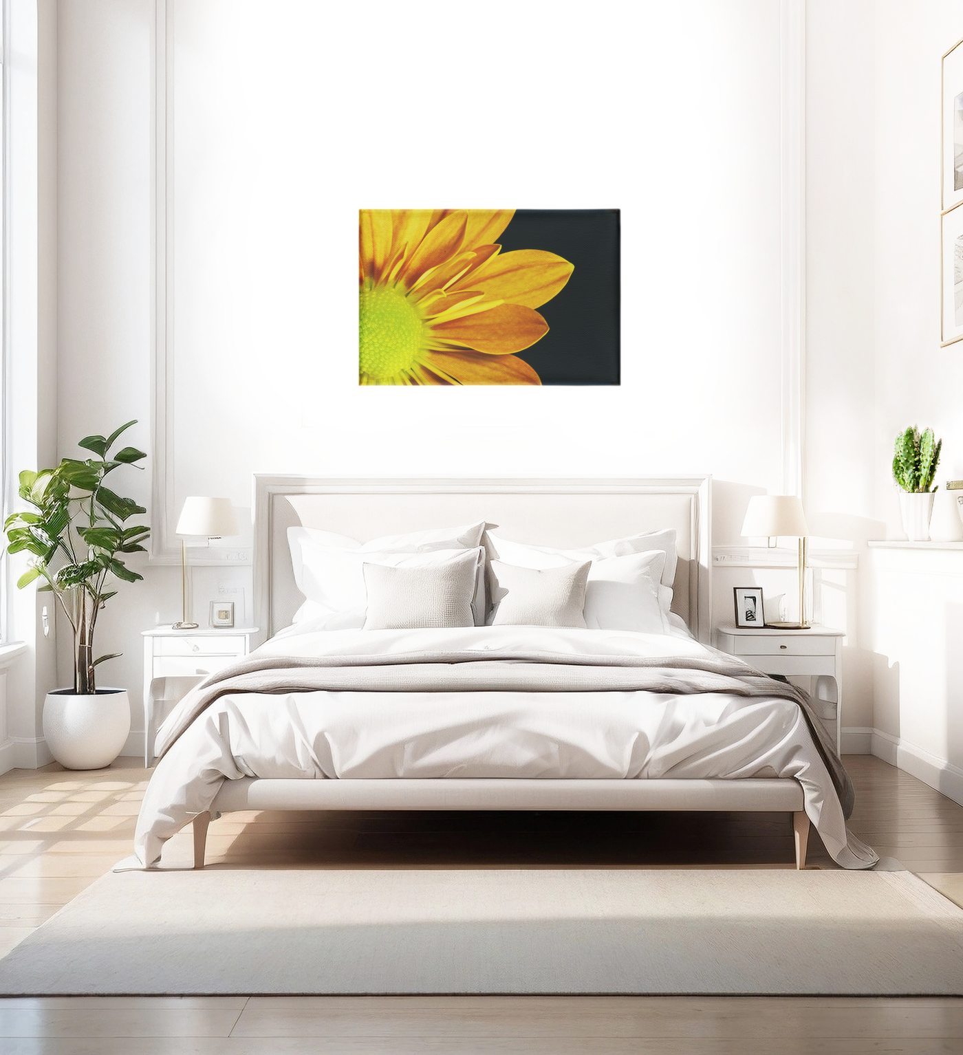 The Canvas print medium enhances the natural textures present in the daisy, adding a tactile quality to the visual experience. The matte finish of the Canvas softens the vibrant yellows, creating a harmonious balance with the dark background. 101 Canvas Prints' photography team have captured the daisy's warmth and delicate beauty, producing a piece that brings nature's charm indoors. This print is ideal for bedrooms, reading nooks, or any space where one wishes to introduce a touch of serenity and simple elegance.