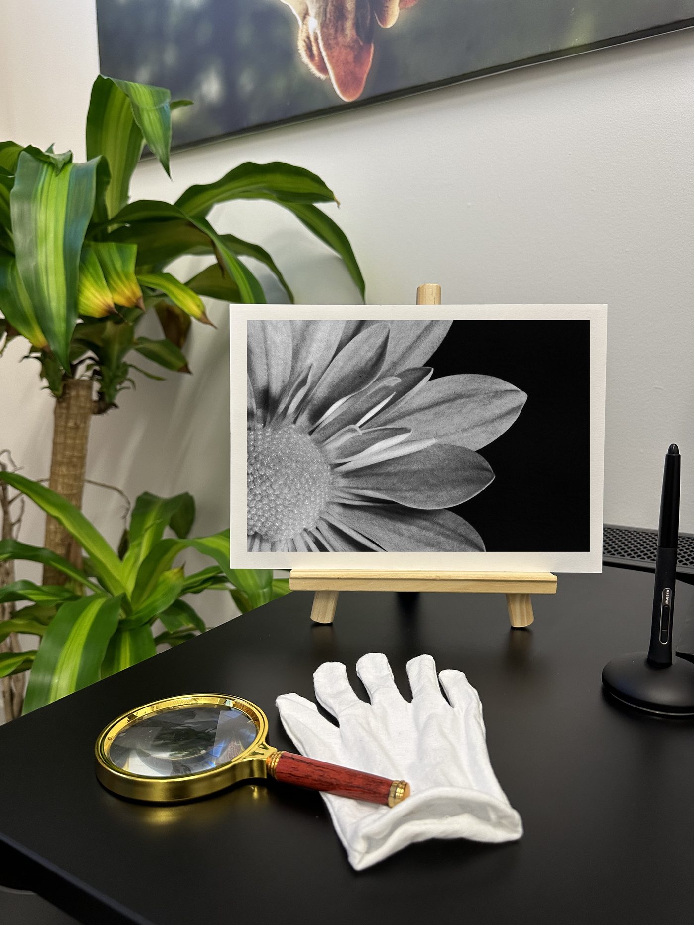 Our carefully handmade monochrome fine art prints are produced on Hahnemühle 308 matte cotton rag paper using Epson archival inks for exceptional detail and color accuracy. Each print features clean, precise edges and a textured surface that brings depth and richness to your chosen artwork, creating a gallery-worthy presentation.