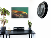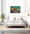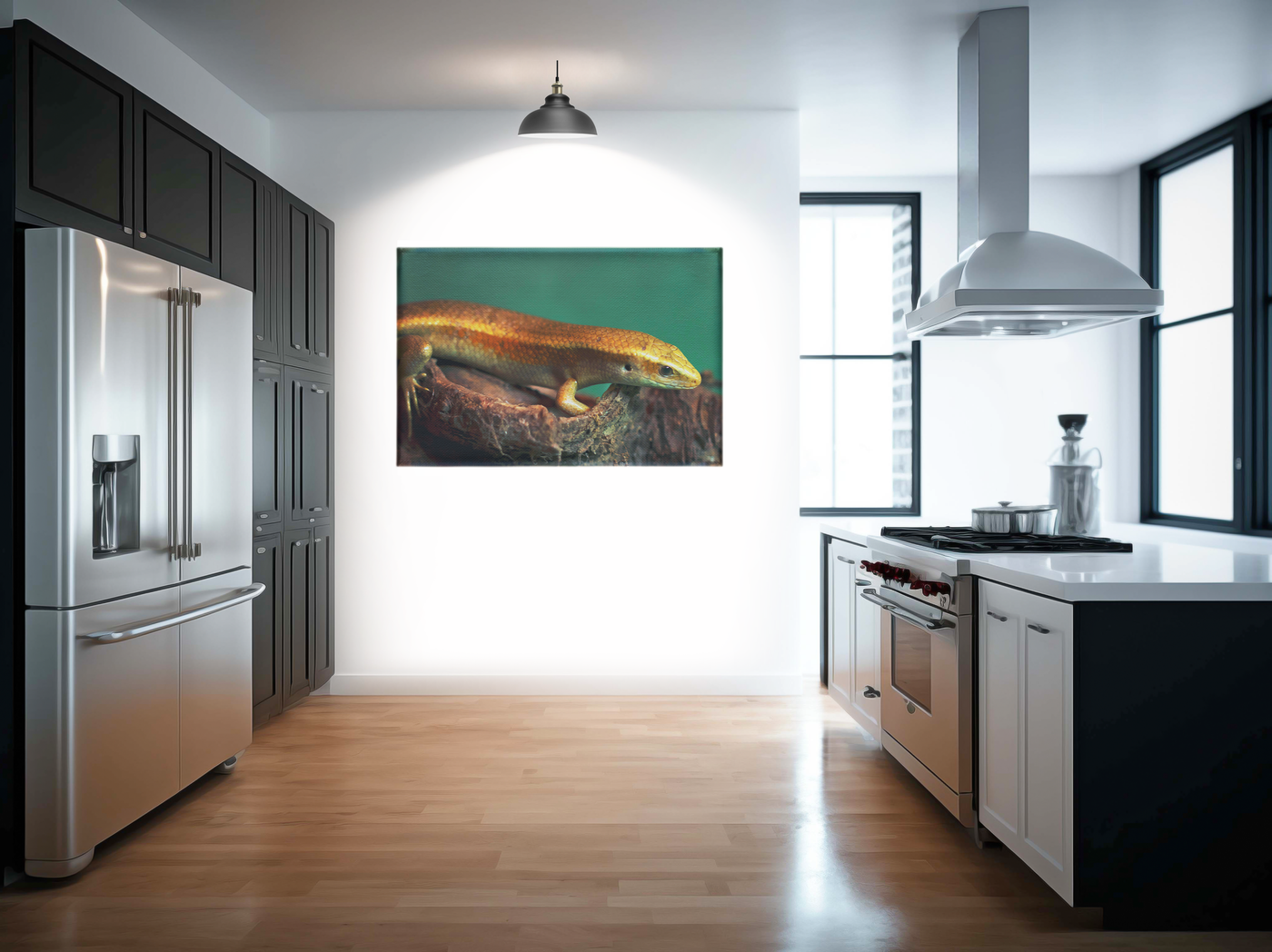 This gorgeous gold and green Canvas print of a skink, features a reptile with a dark green background. The orange hues on the reptiles skin contrast with the greens to make this the perfect piece for anyone who loves exotic animals or, alternatively, anyone who is looking for a subtle splash of colour in their room.