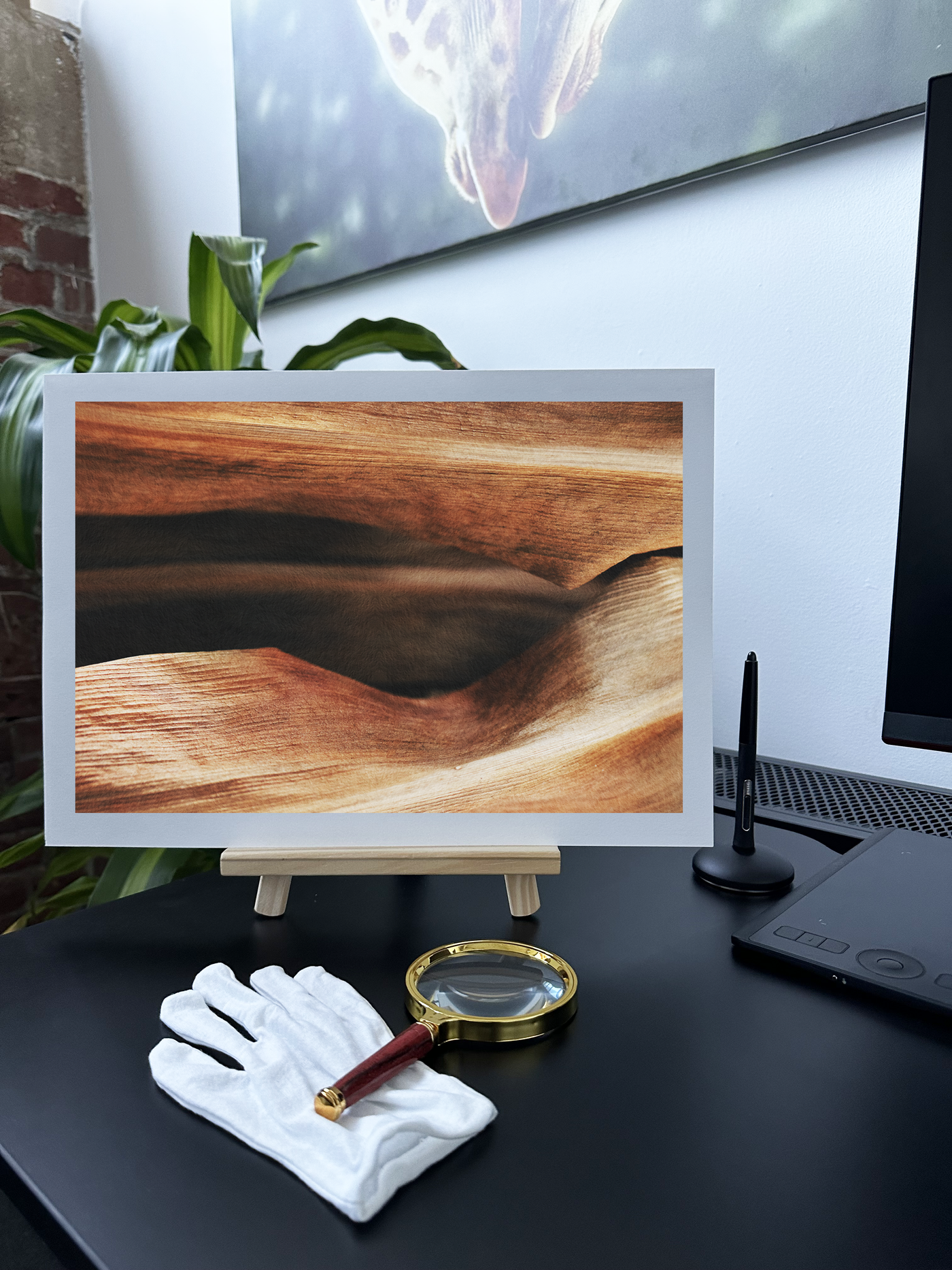Our carefully handmade fine art prints are produced on Hahnemühle 308 matte cotton rag paper using Epson archival inks for exceptional detail and color accuracy. Each print features clean, precise edges and a textured surface that brings depth and richness to your chosen artwork, creating a gallery-worthy presentation.