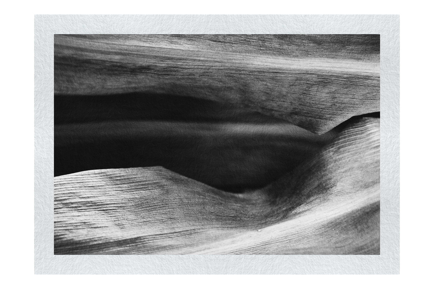 Immerse yourself in the mesmerising beauty of leaf texture with this stunning Monochrome Fine Art print that transforms nature into an abstract landscape of curves and contours. The image presents a close-up view of leaf surfaces, their gentle undulations creating a sense of movement and flow. The composition invites the eye to wander across peaks and valleys of veins, each curve and line telling a story of growth and time.