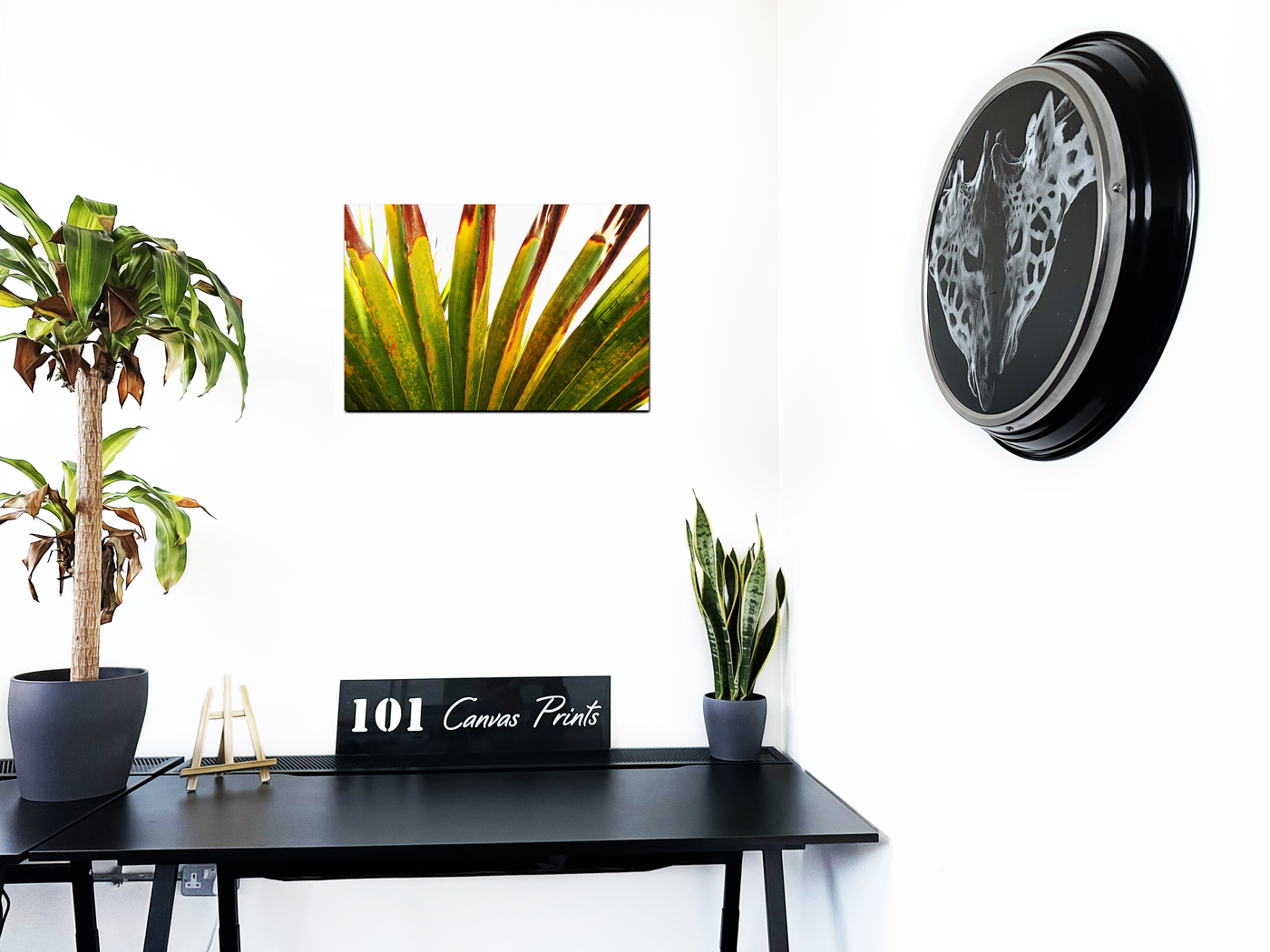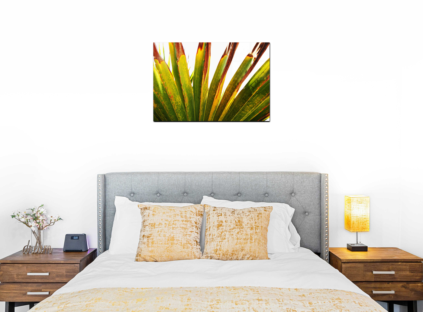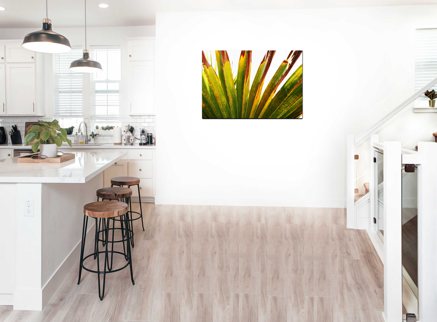 This Acrylic print would make a stunning focal point in a modern interior, particularly in spaces with a minimalist or tropical theme. The glossy, contemporary finish of the acrylic-set print would complement sleek, urban décor while bringing a burst of natural vitality to the environment.