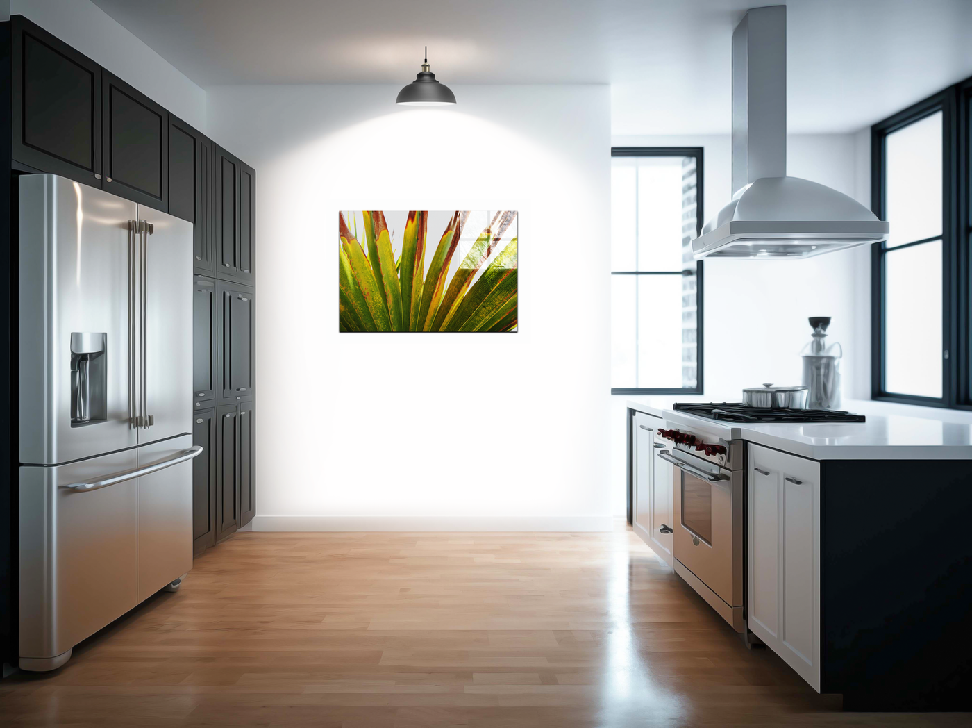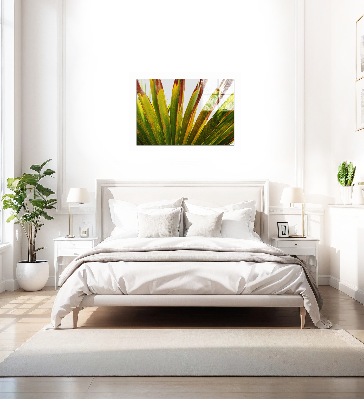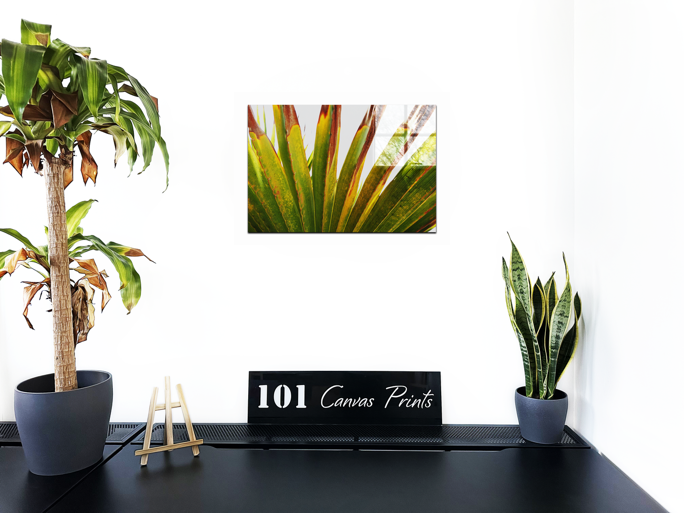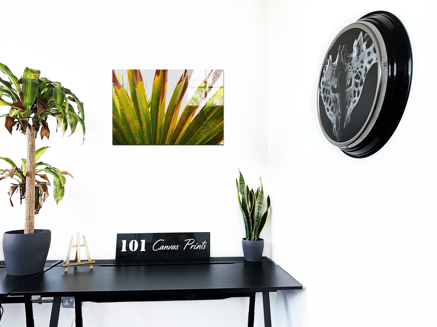 This Acrylic print would make a stunning focal point in a modern interior, particularly in spaces with a minimalist or tropical theme. The glossy, contemporary finish of the acrylic-set print would complement sleek, urban décor while bringing a burst of natural vitality to the environment.