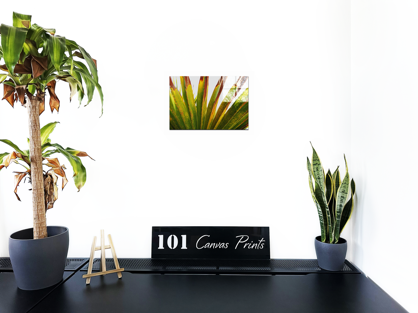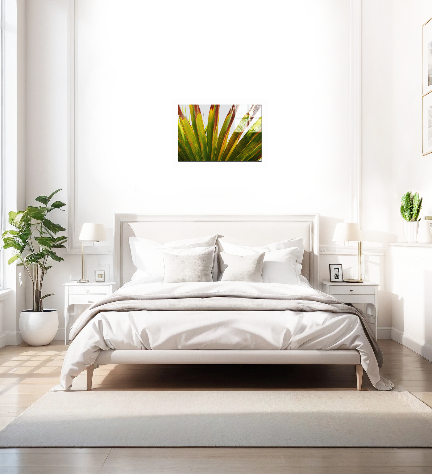 This Acrylic print would make a stunning focal point in a modern interior, particularly in spaces with a minimalist or tropical theme. The glossy, contemporary finish of the acrylic-set print would complement sleek, urban décor while bringing a burst of natural vitality to the environment.