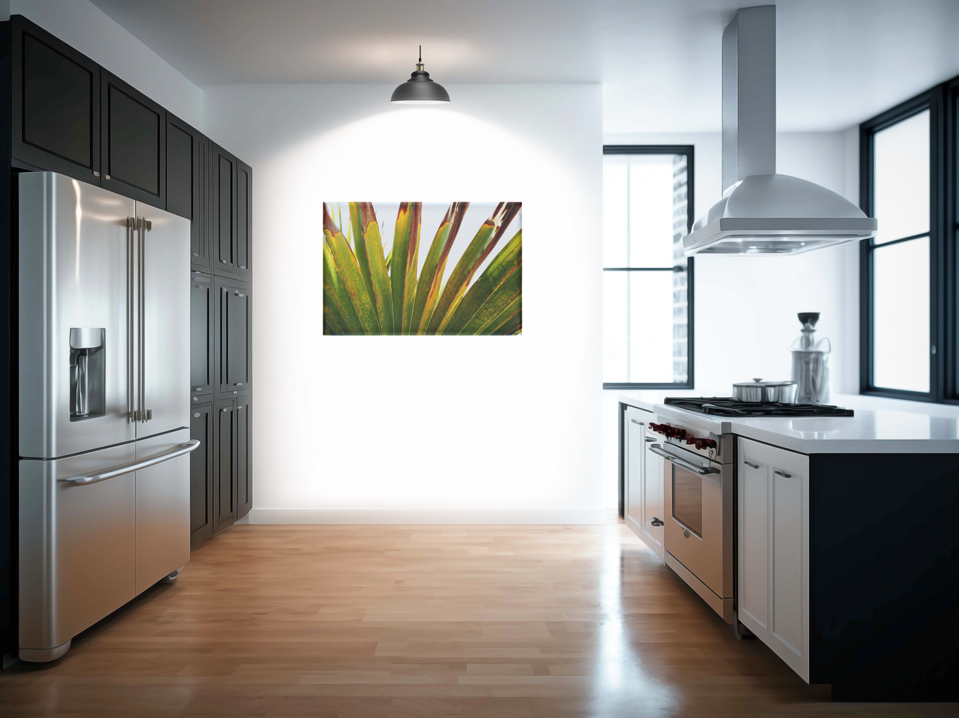 Rendered on Canvas, this image takes on a tactile quality that perfectly complements the natural subject matter. The slightly textured surface of the Canvas enhances the organic feel of the leaves, while the matte finish softens the light, creating a soothing visual experience. This print would be an excellent addition to a living room, bedroom, or any space where a touch of tropical warmth is desired. The Canvas medium allows the vibrant greens to appear rich yet subtle, making it a versatile piece that can energise a room without overwhelming other design elements.