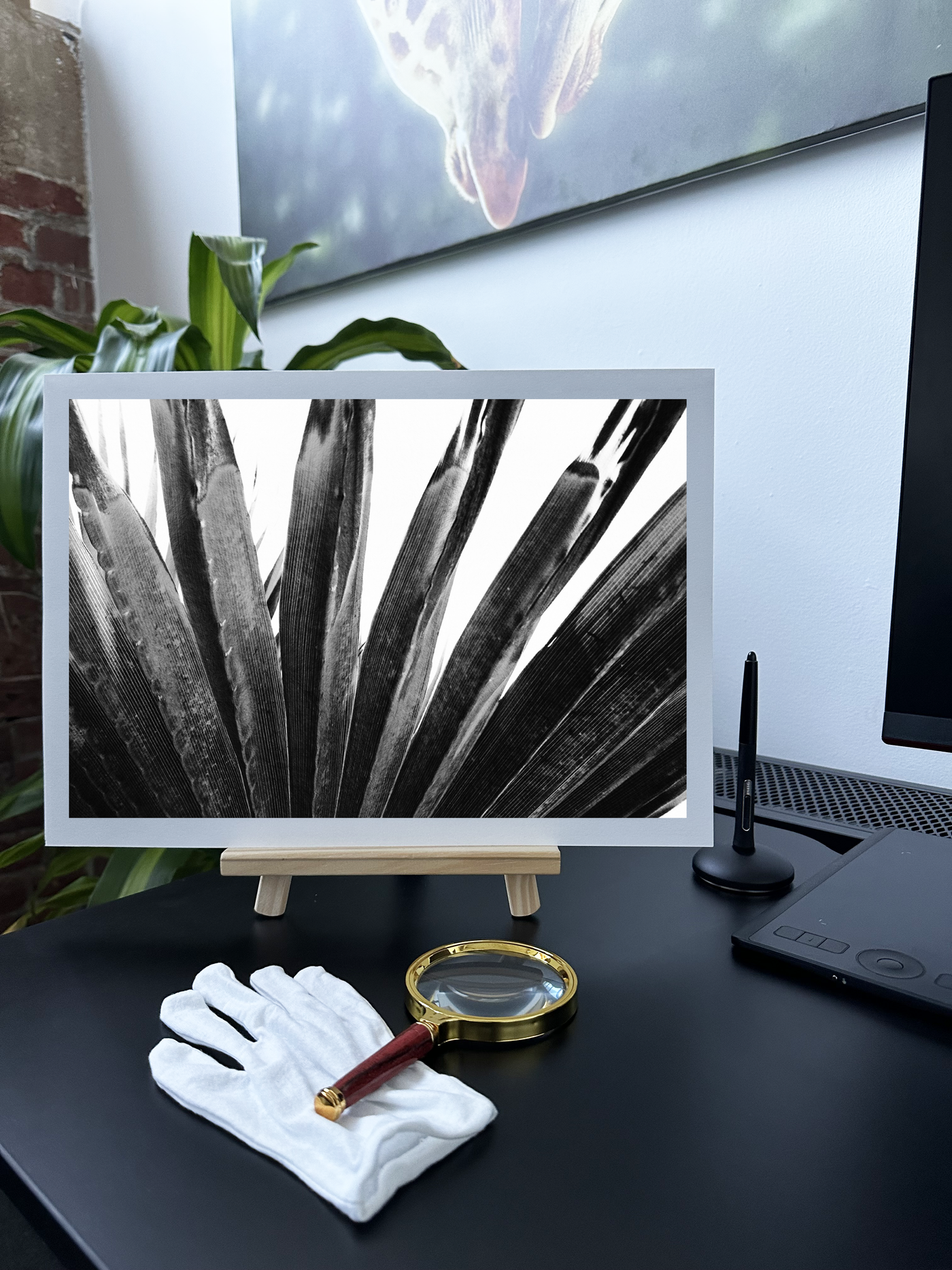 Our carefully handmade monochrome fine art prints are produced on Hahnemühle 308 matte cotton rag paper using Epson archival inks for exceptional detail and color accuracy. Each print features clean, precise edges and a textured surface that brings depth and richness to your chosen artwork, creating a gallery-worthy presentation.