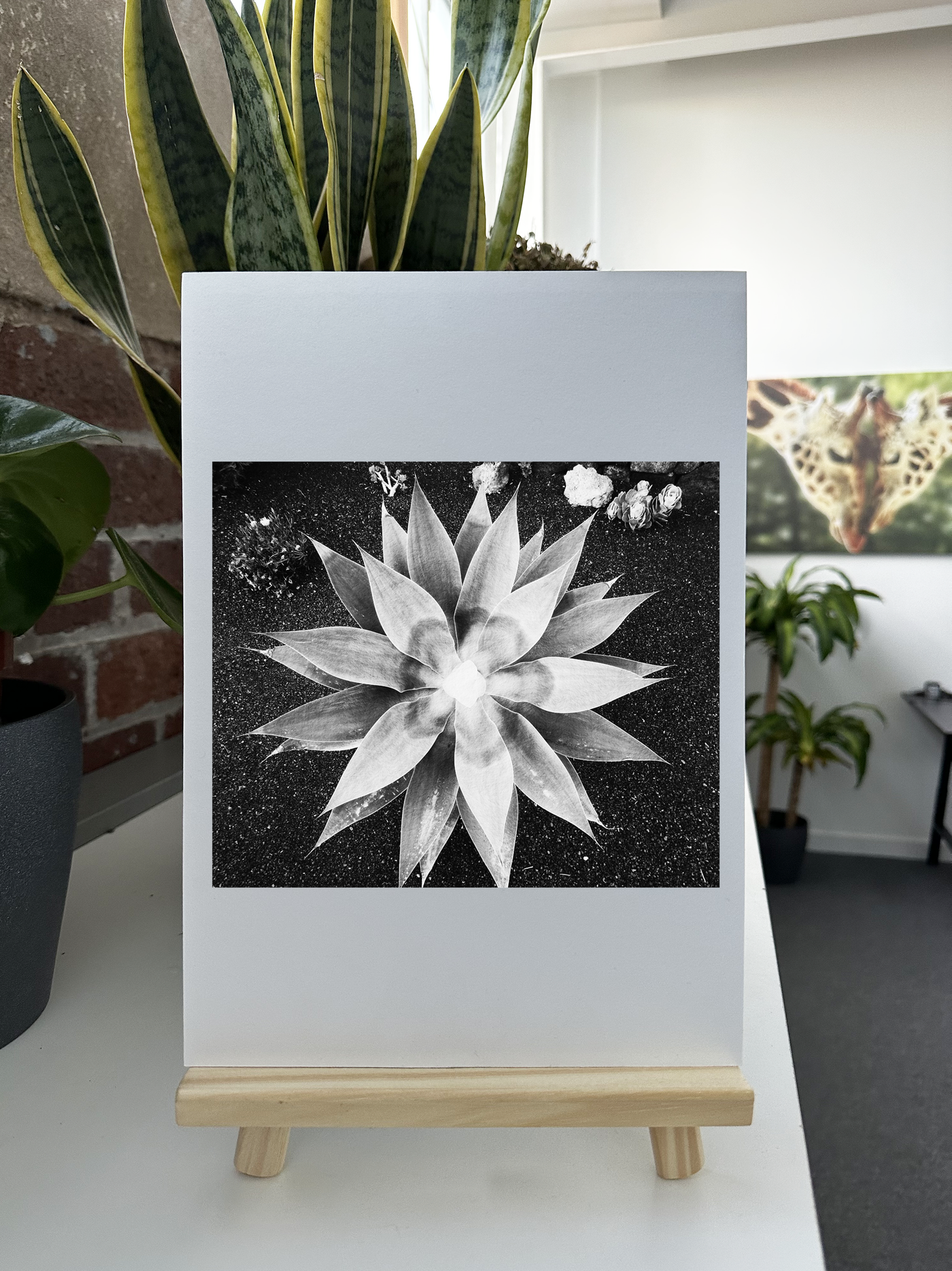 Printed on Fine Art paper, this image takes on a new dimension of natural beauty. The matte finish of the Fine Art paper softens the succulent's sharp edges, creating a harmonious blend with the textured background. The Fine Art paper texture subtly mimics the grainy texture of the soil, enhancing the organic feel of the piece. This print would be a stunning focal point in a modern living room, adding a touch of natural geometry to the space. It would also be well-suited to a home office or meditation room, where its symmetrical pattern could provide a sense of balance and tranquillity.