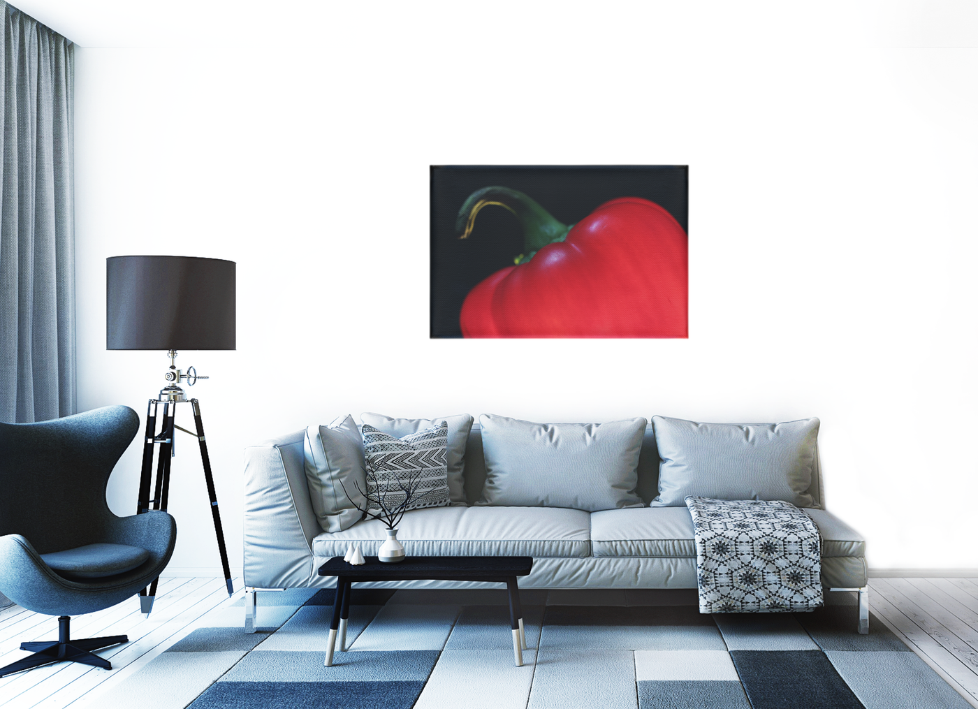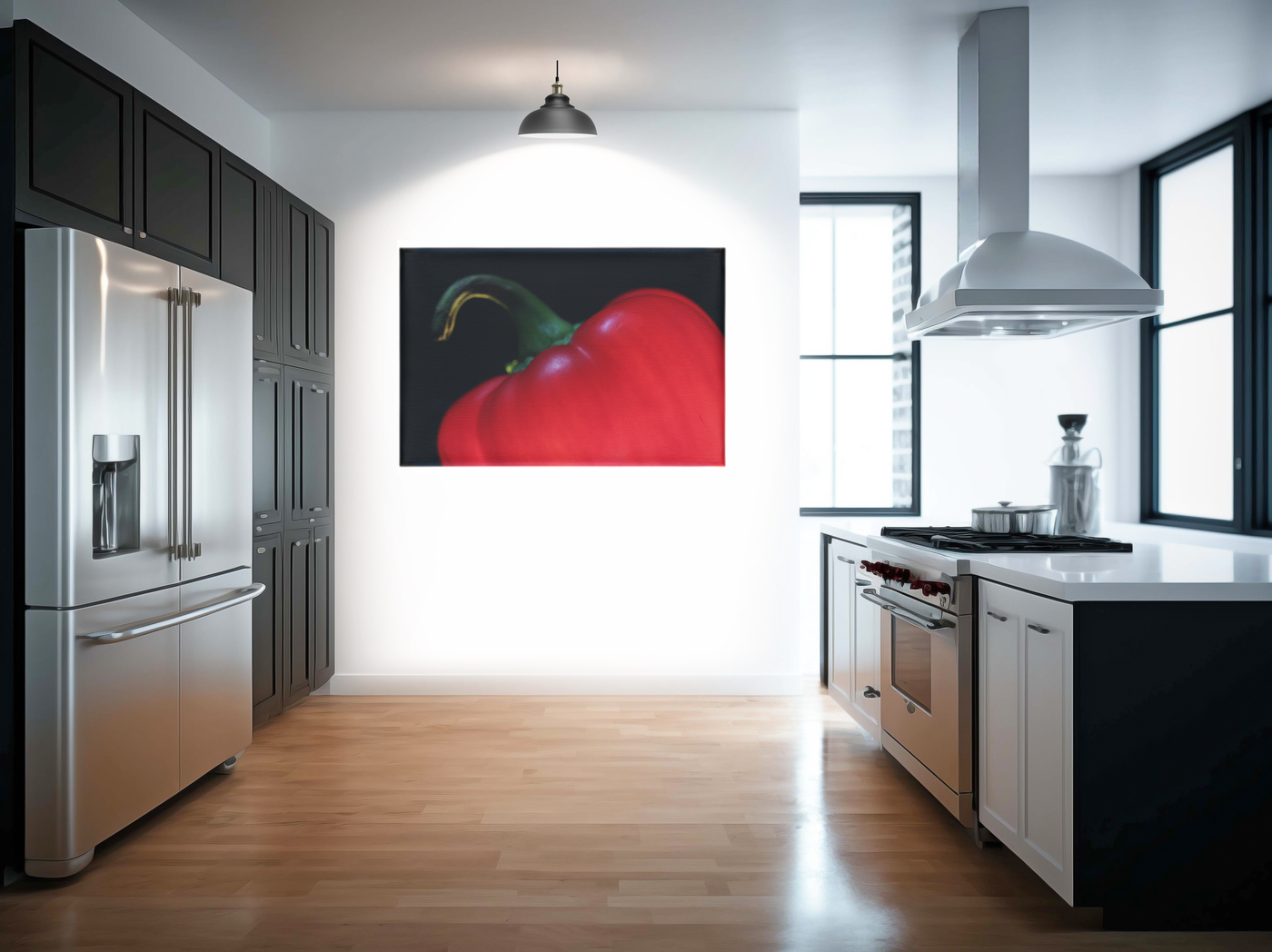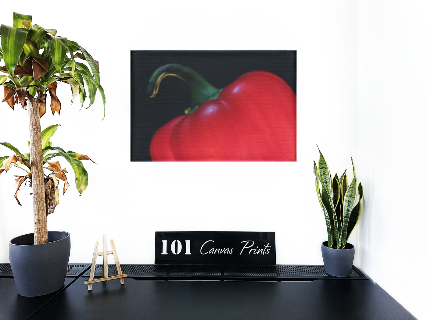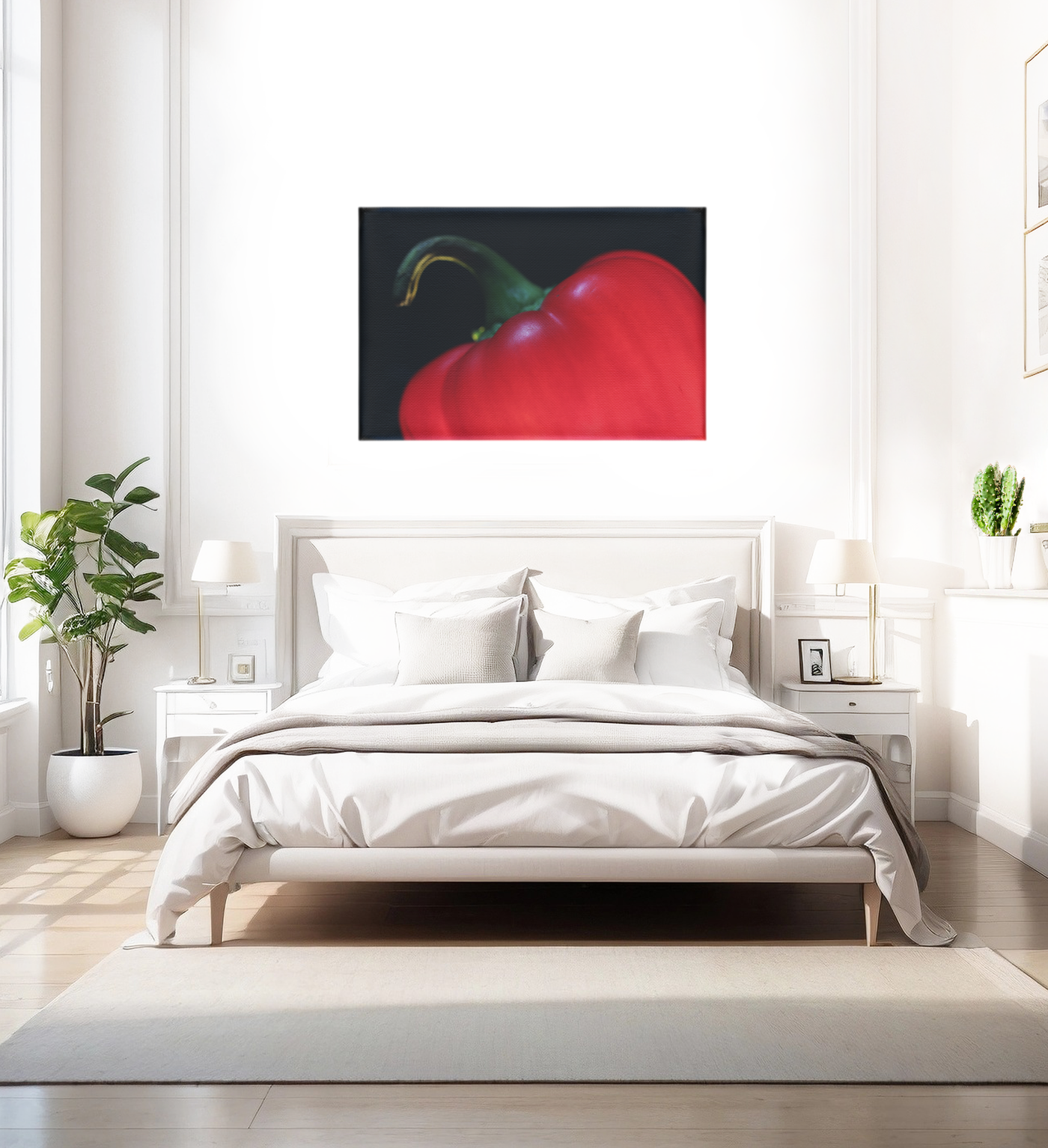 This Canvas print would make a bold statement in a kitchen or dining area, bringing a pop of colour and a celebration of natural beauty to the space. The Canvas medium allows the rich red hues to appear deep and luxurious, creating a piece that is both visually striking and subtly sophisticated.
