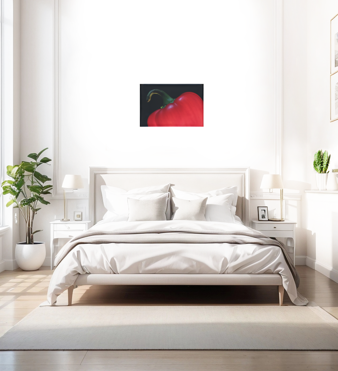 This Canvas print would make a bold statement in a kitchen or dining area, bringing a pop of colour and a celebration of natural beauty to the space. The Canvas medium allows the rich red hues to appear deep and luxurious, creating a piece that is both visually striking and subtly sophisticated.