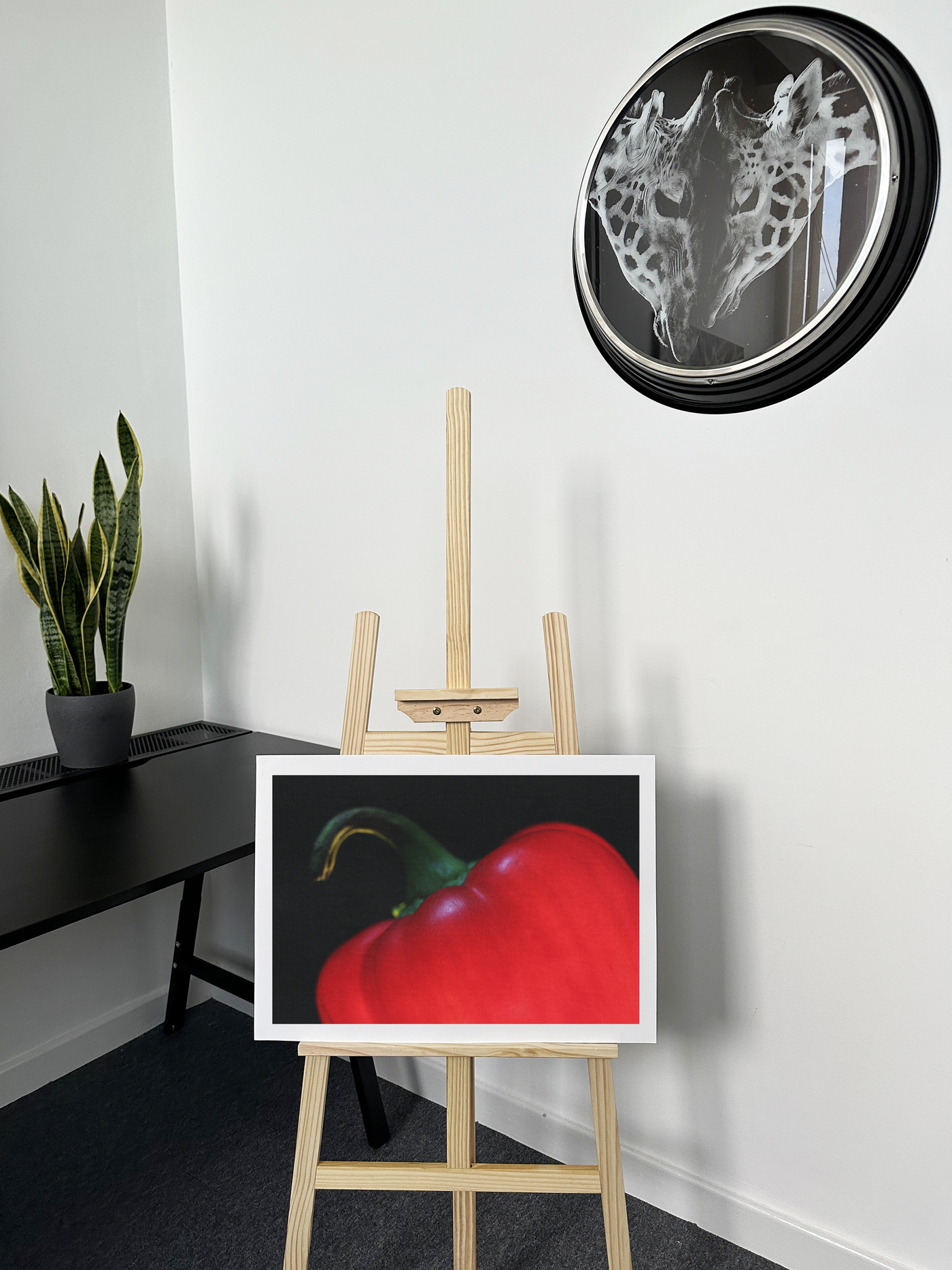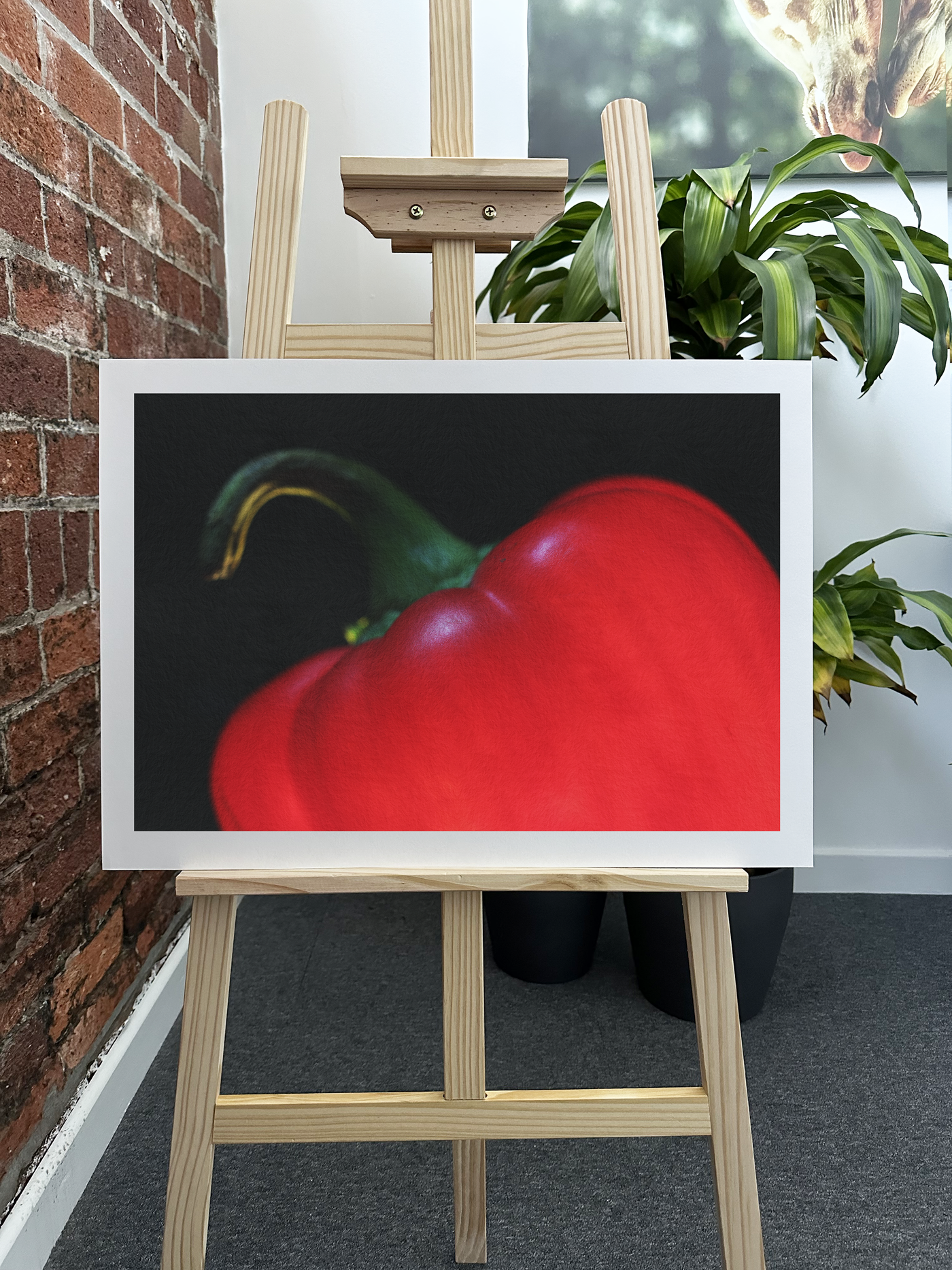 This Fine Art print would make a bold statement in a kitchen or dining area, bringing a pop of colour and a celebration of natural beauty to the space. The Fine Art print medium allows the rich red hues to appear deep and luxurious, creating a piece that is both visually striking and subtly sophisticated.