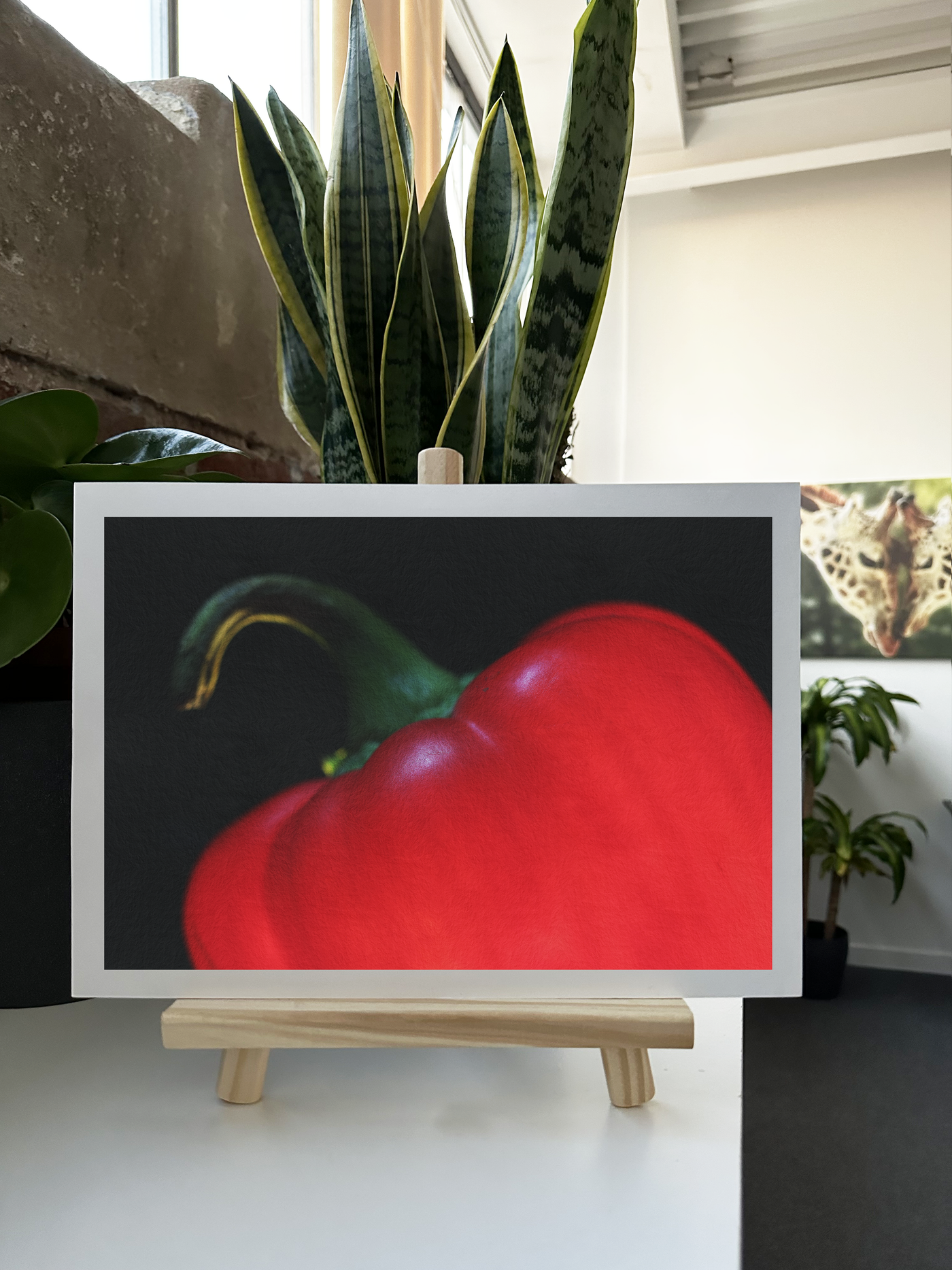 This Fine Art print would make a bold statement in a kitchen or dining area, bringing a pop of colour and a celebration of natural beauty to the space. The Fine Art print medium allows the rich red hues to appear deep and luxurious, creating a piece that is both visually striking and subtly sophisticated.