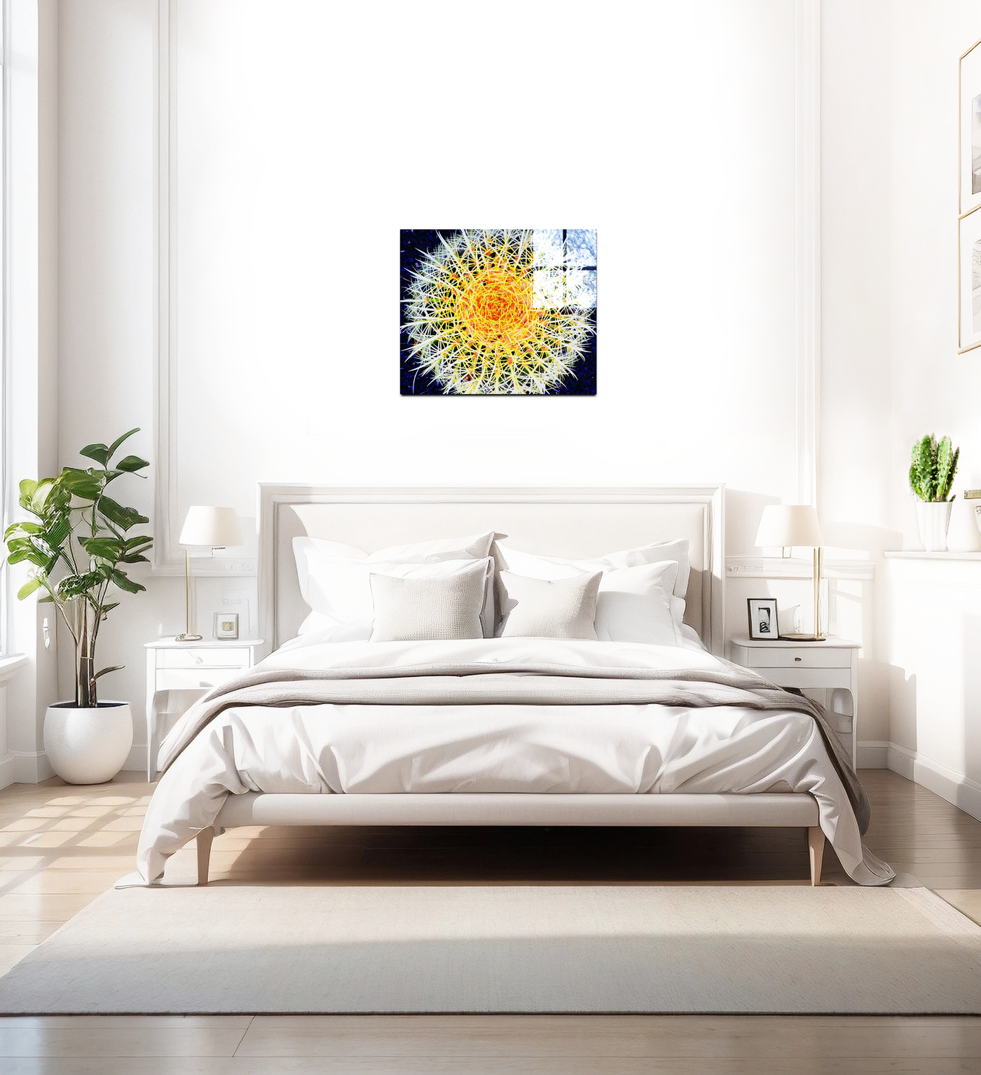The hot cactus Acrylic print is a stunning piece of artwork that is sure to transform every room it's hung in. On a large scale, this multi-coloured image shows the beauty of nature and man working in harmony, and will make an unusual yet striking feature for any home.