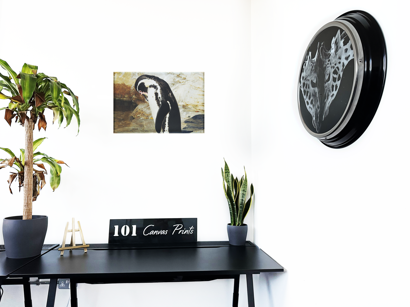 Humboldt penguins, found along the coasts of Chile and Peru, are one of the smallest species of penguin. In this piece the 101 Canvas Prints team have captured a brief moment of vulnerability in exquisite detail, highlighting the gentle and delicate temperament of these beautiful birds.