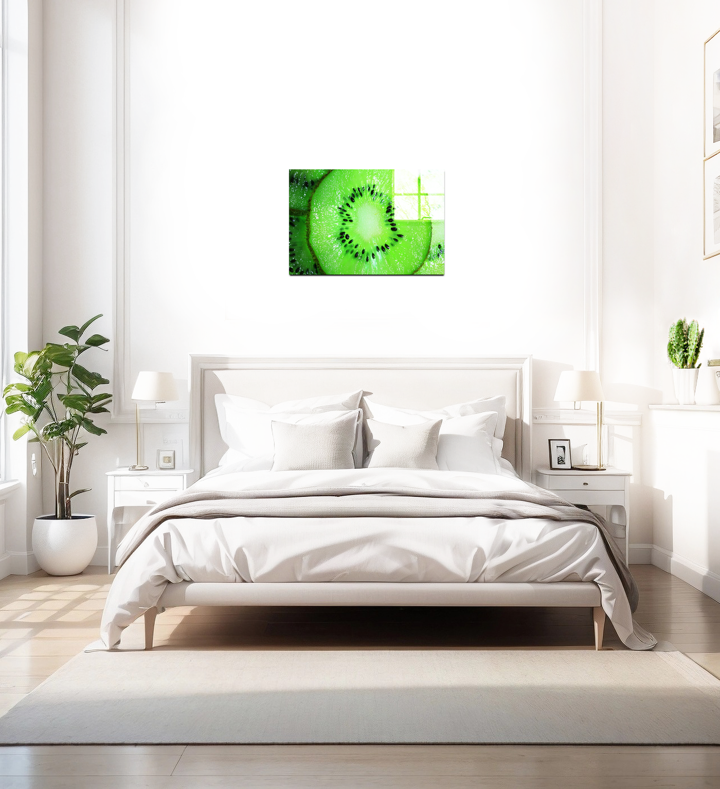 This Acrylic Art print would make a bold statement in a contemporary kitchen, its fresh and invigorating imagery perfectly complementing a health-focused environment. Alternatively, it could serve as a unique and eye-catching addition to a bathroom or spa area, its circular form and natural subject matter promoting a sense of wellness and renewal.