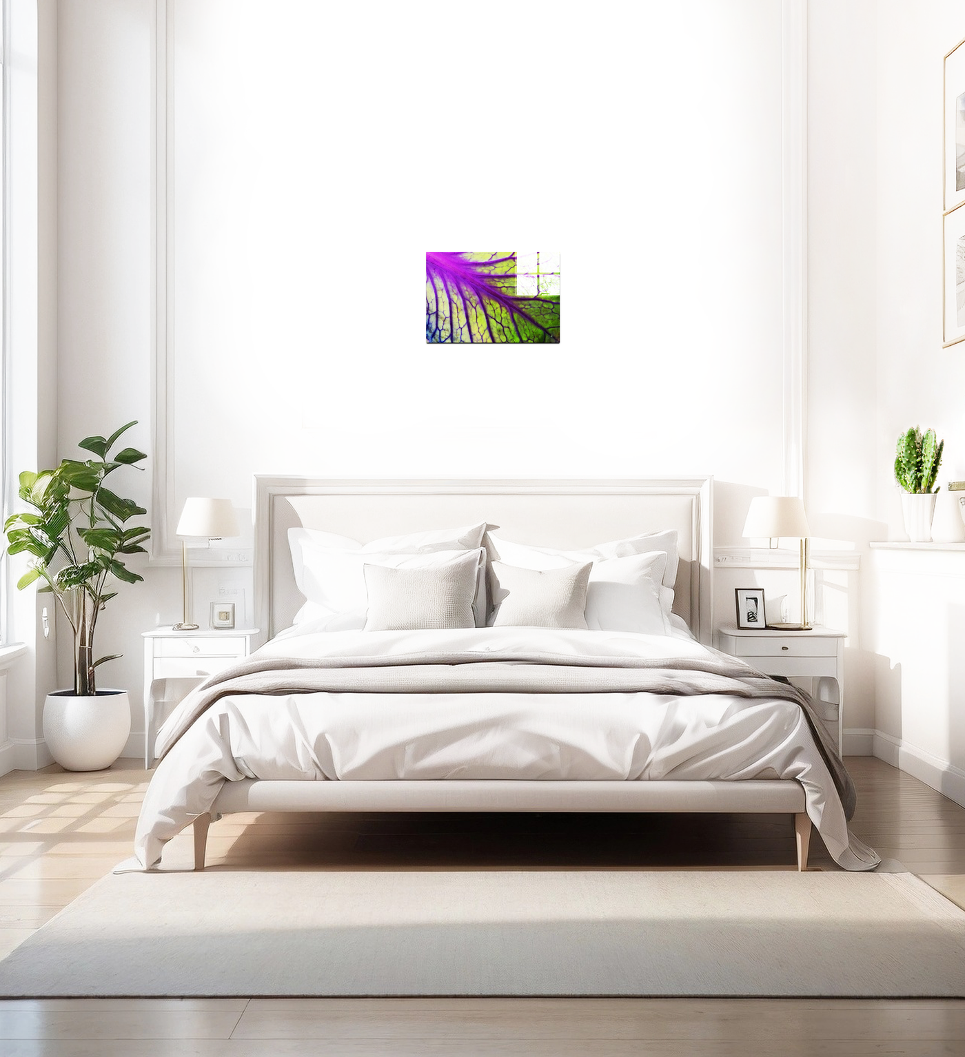 When presented in our premium Acrylic medium, this botanical masterpiece achieves an extraordinary level of visual impact. The high-gloss finish dramatically enhances the vibrancy of both the purples and greens, while the crystal-clear surface creates an almost three-dimensional effect that brings new life to the leaf's internal landscape. The way light interacts with our Acrylic prints adds an extra dimension to the viewing experience, making the leaf's structure appear to glow from within, much like it might appear when held up to natural sunlight. This stunning piece would be particularly effective in contemporary spaces where its vibrant colours and natural patterns can create maximum impact, from a modern home to a medical office or botanical institution.