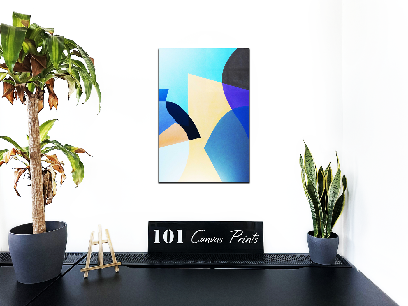 This elegant geometric composition, expertly reproduced by the 101 Canvas Prints team, presents a masterful study in form and colour. The artwork creates a sense of perfect balance through its arrangement of curved and straight edges, while the thoughtful use of positive and negative space generates a compelling visual rhythm. Each shape appears to both define and respond to the others, creating a dynamic yet harmonious whole.