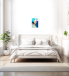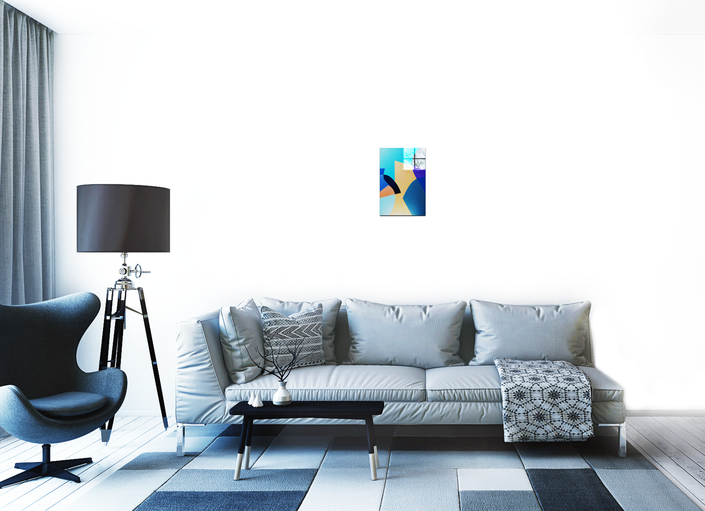 The artist's sophisticated use of colour creates a serene visual impact, with a carefully curated palette of blues ranging from bright aqua to deep navy, balanced by warm neutral tones. Through our precise photography and print enhancement process, we've maintained the crisp definition between colour fields while preserving the subtle tonal variations that give each shape its distinctive character. The result is an image that combines geometric precision with artistic sensitivity.