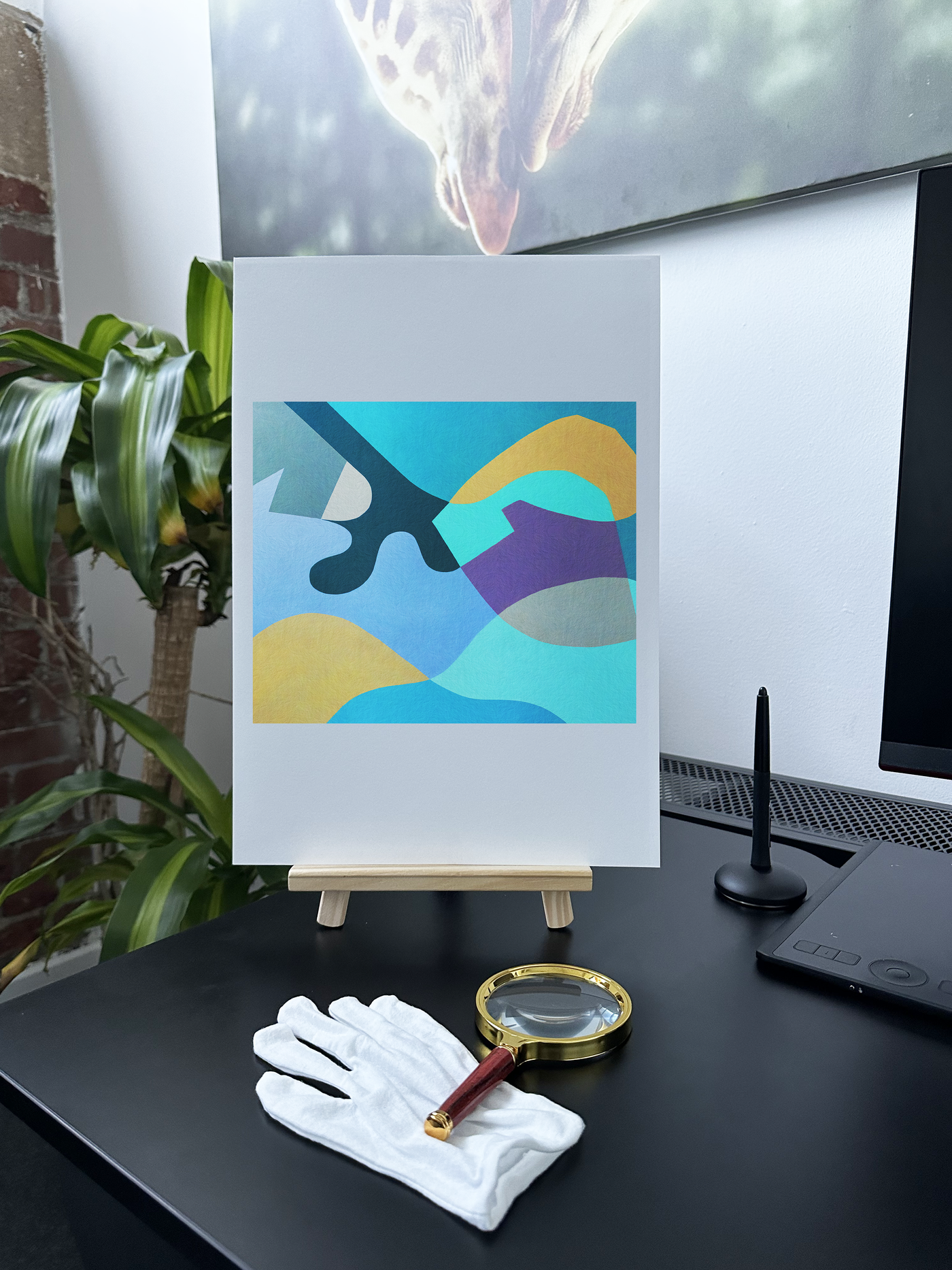 Reproduced on our premium Fine Art paper material, this coastal abstraction takes on an additional layer of artistic refinement. The natural, matte finish of the Fine Art paper softens the maritime colours just enough to create a sophisticated gallery-quality appearance while maintaining the crisp definition between shapes. This piece would make a perfect addition to any contemporary space seeking to capture the serenity of coastal environments through modern artistic interpretation.