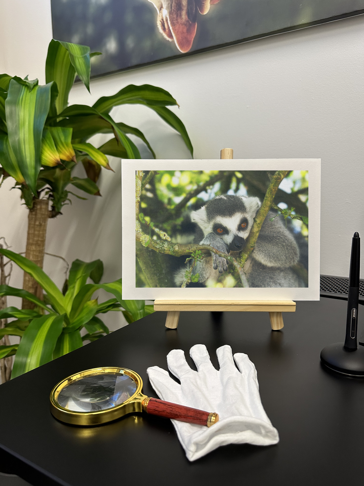 The Lemur Pondering Fine Art Print is a beautiful piece of art that will stand out in any room and remind you of the wonders of the nature.