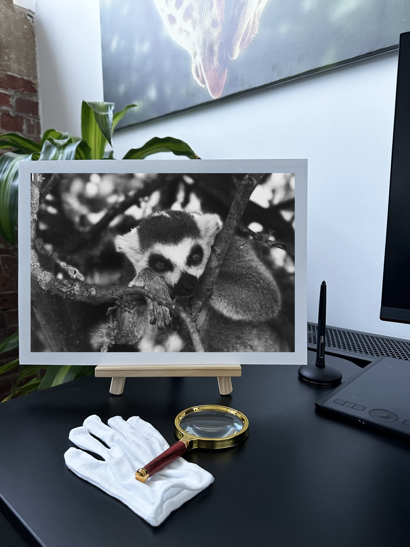 Lemur Pondering - Monochrome Fine Art Print - Wildlife Category