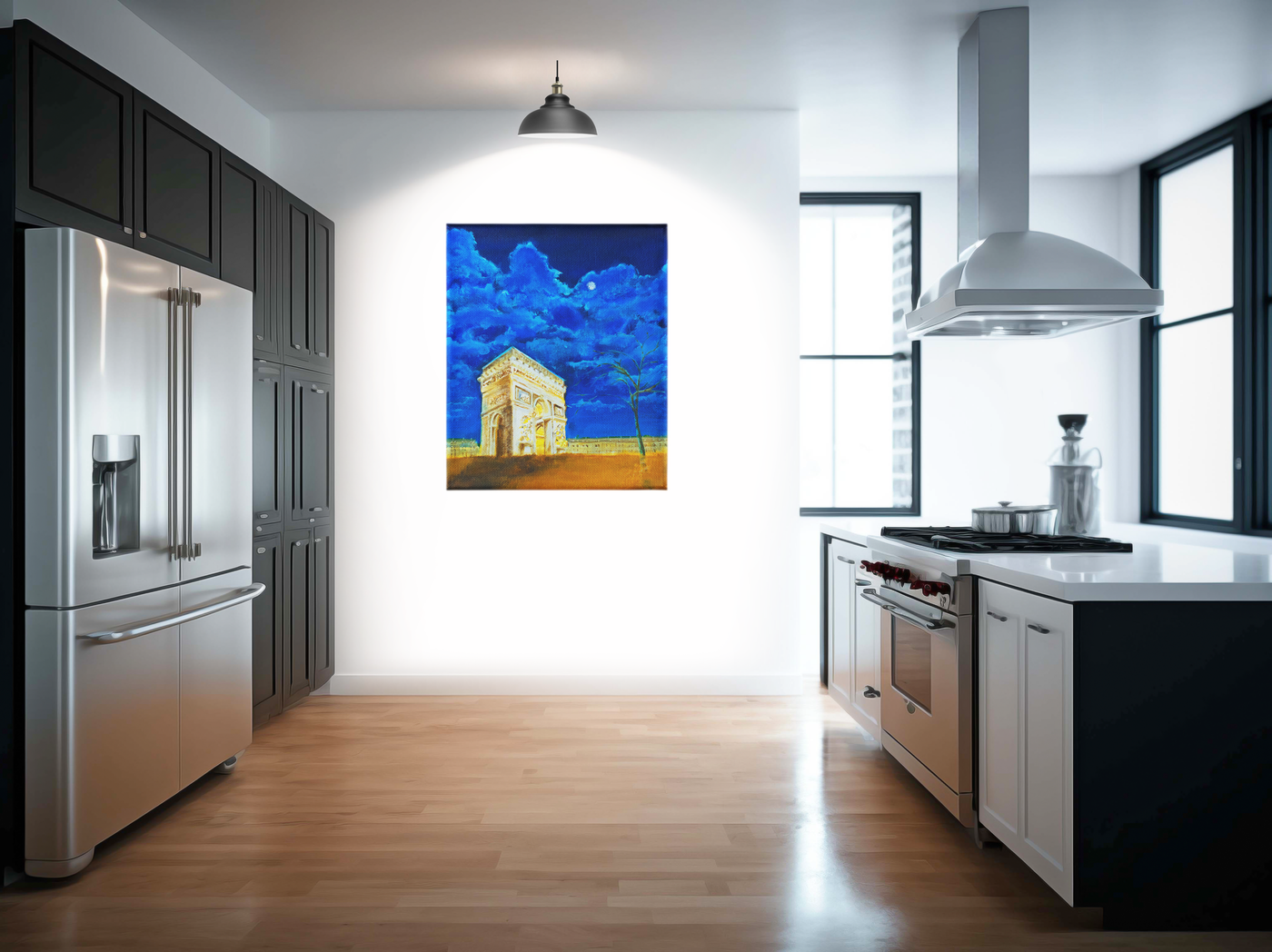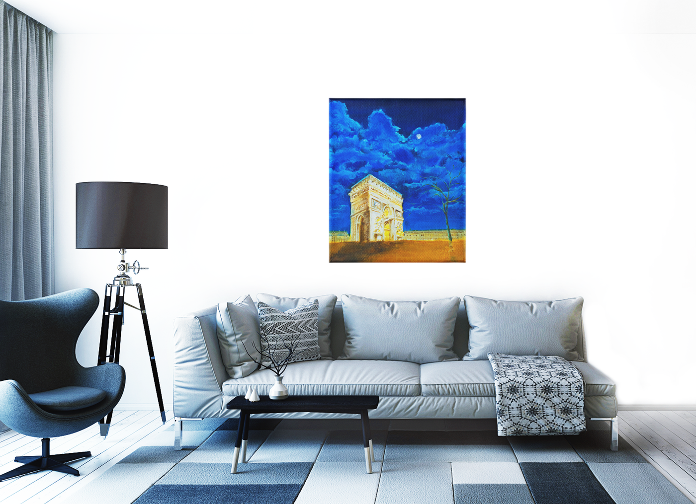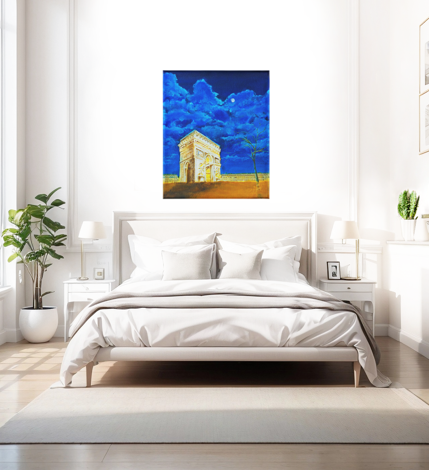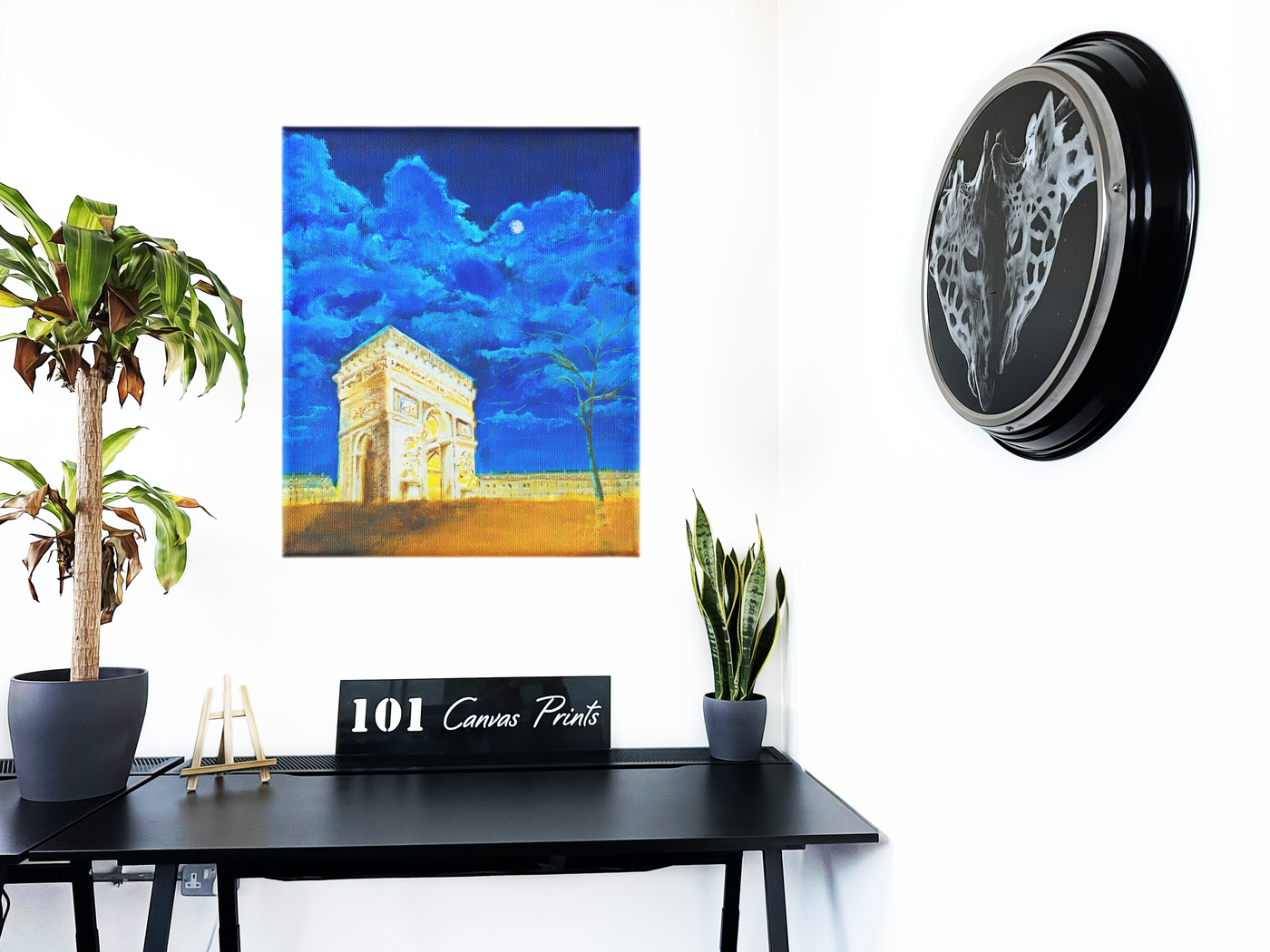Reproduced on our premium Canvas material, this study of solitude and strength takes on an additional layer of emotional resonance. The natural, matte finish of the Canvas perfectly complements the painting's contemplative mood while maintaining the dramatic contrast between the illuminated monument and the deep blue sky. This piece would make a powerful statement in any space where its themes of resilience and introspection during extraordinary times can resonate with viewers.