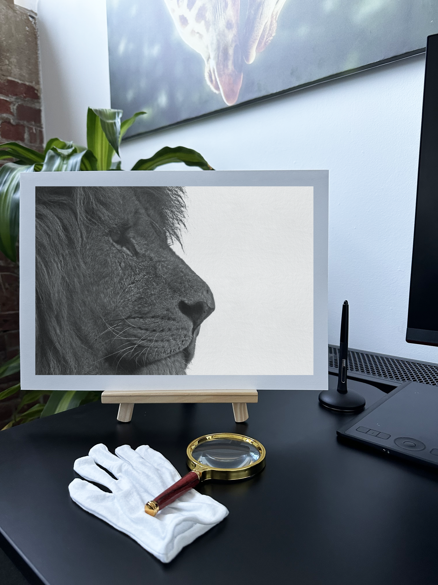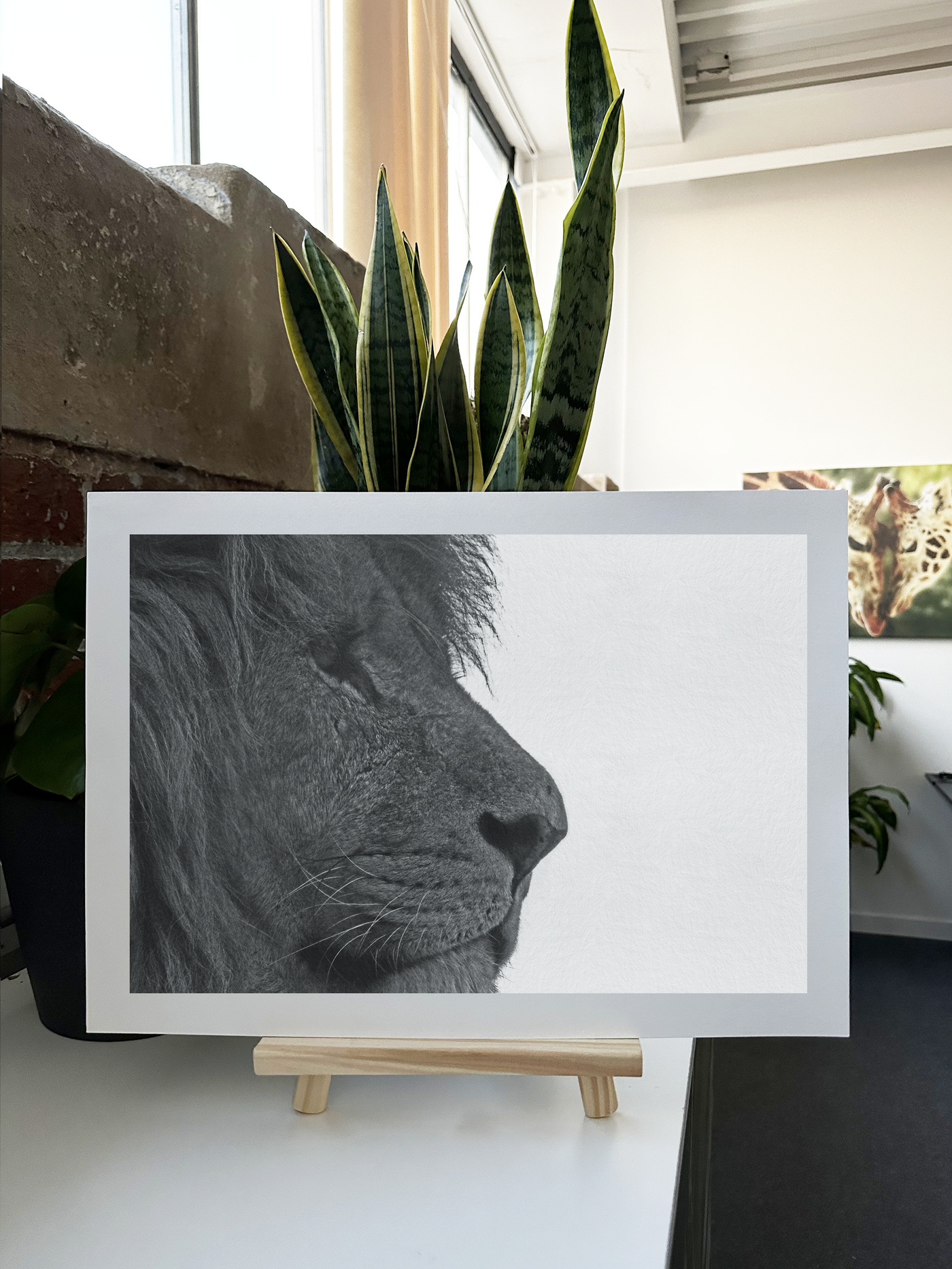 A majestic lion is a force to be reckoned with his stern, unblinking gaze that captures the pride and determination of the king of beasts. This Fine Art print is perfect for any décor. A high quality Fine Art print, the Lion in Side-Profile features a close up portrait of a lion with a calm, composed expression.