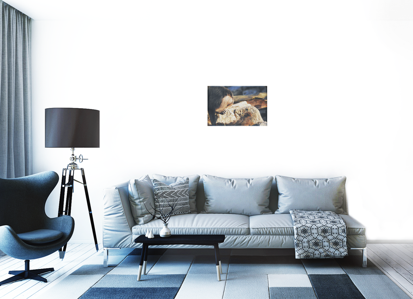 The striking beauty of the lion-tailed macaque has been captured in this Canvas print. The photograph is printed on Canvas with a warm palette of sandy tones and uses lighting and shadows to create an artistic impression.