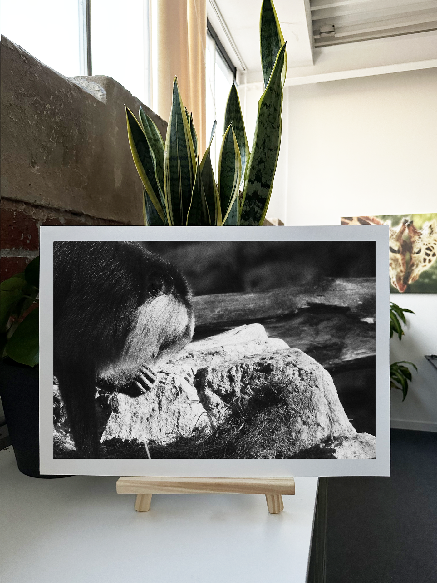 The striking beauty of the lion-tailed macaque has been captured in this Monochromatic Fine Art print. The photograph is printed on Fine Art paper with a warm palette of bright silvery tones and uses lighting and shadows to create an artistic impression.