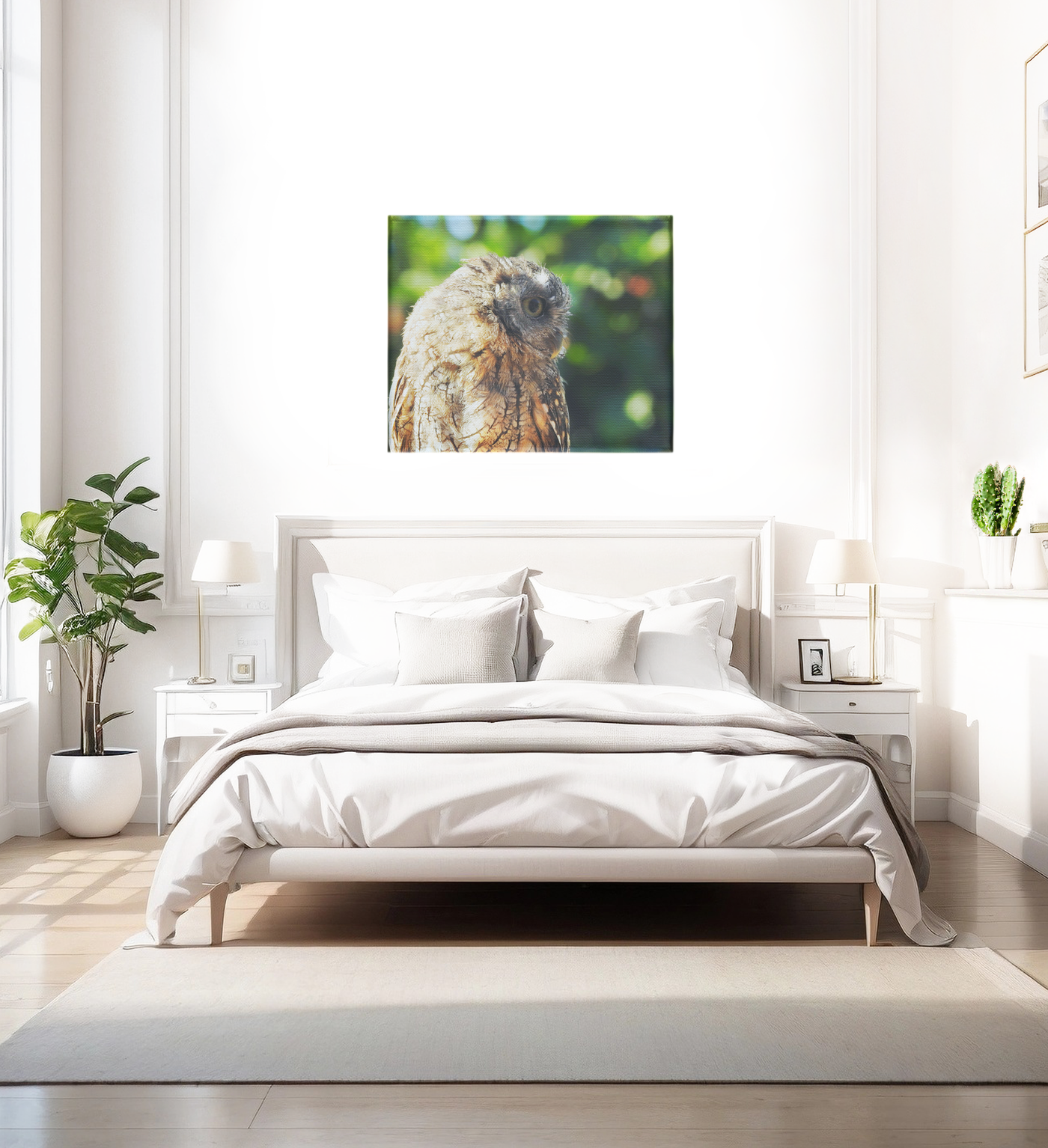 Showcasing a photograph of a beautiful little owl against a background of a leafy forest canopy, our Canvas print is sure to bring serene style to your home. The neutral colours blend seamlessly with other pieces, while the natural colour palette and details enhance its timeless feel.