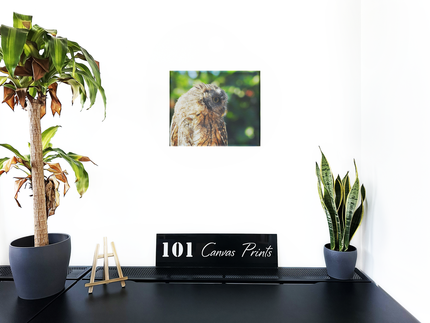 Escape to the tranquillity of an ancient forest with this beautiful little owl Canvas print.