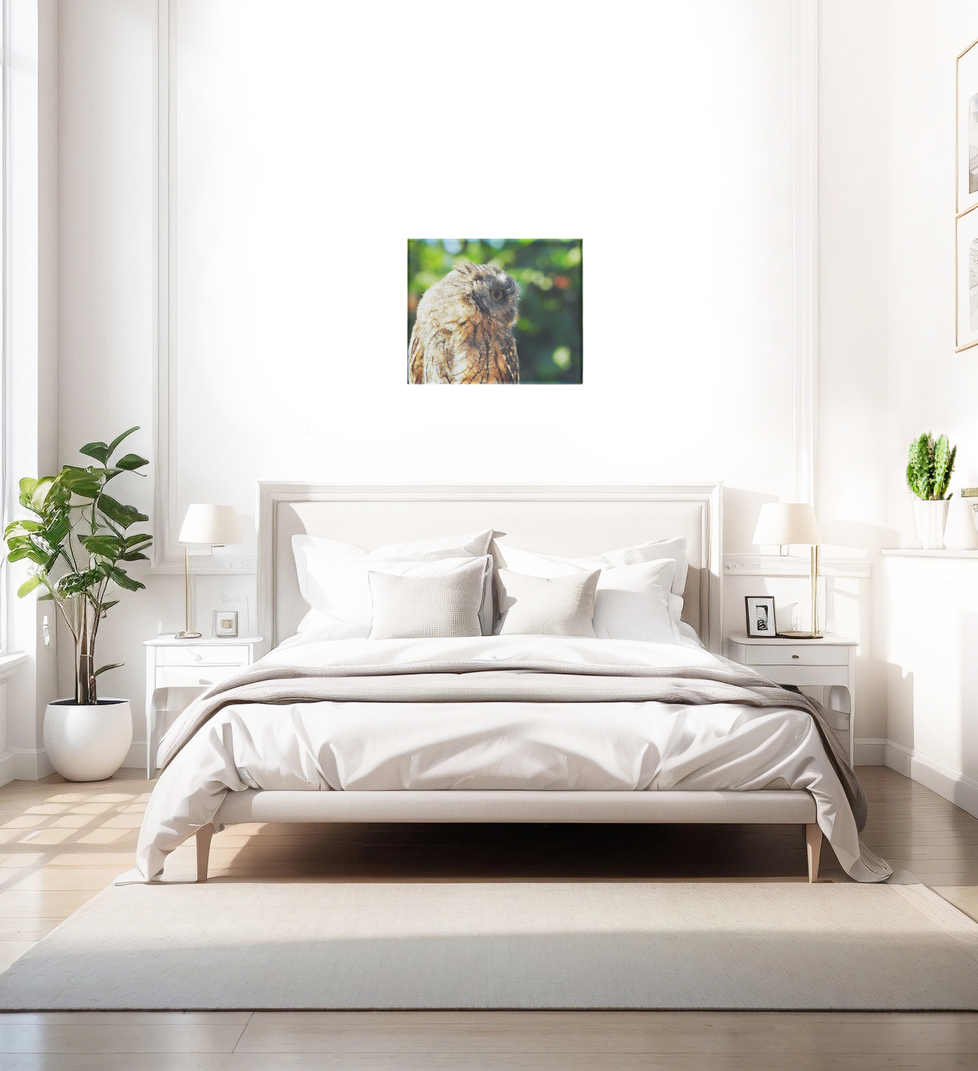 Showcasing a photograph of a beautiful little owl against a background of a leafy forest canopy, our Canvas print is sure to bring serene style to your home. The neutral colours blend seamlessly with other pieces, while the natural colour palette and details enhance its timeless feel.