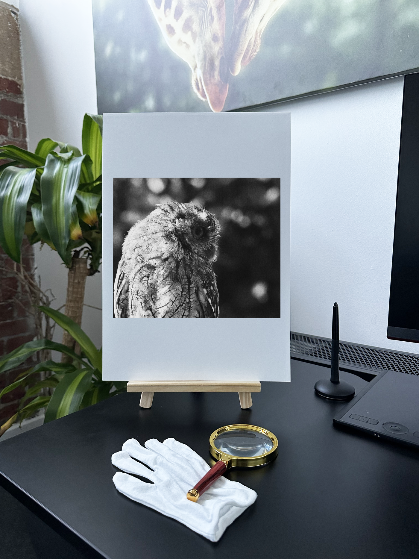 Showcasing a photograph of a beautiful little owl against a background of a leafy forest canopy, our Monochrome Fine Art print is sure to bring serene style to your home. The neutral Monochromatic tones blend seamlessly with other pieces, while the natural colour palette and details enhance its timeless feel.
