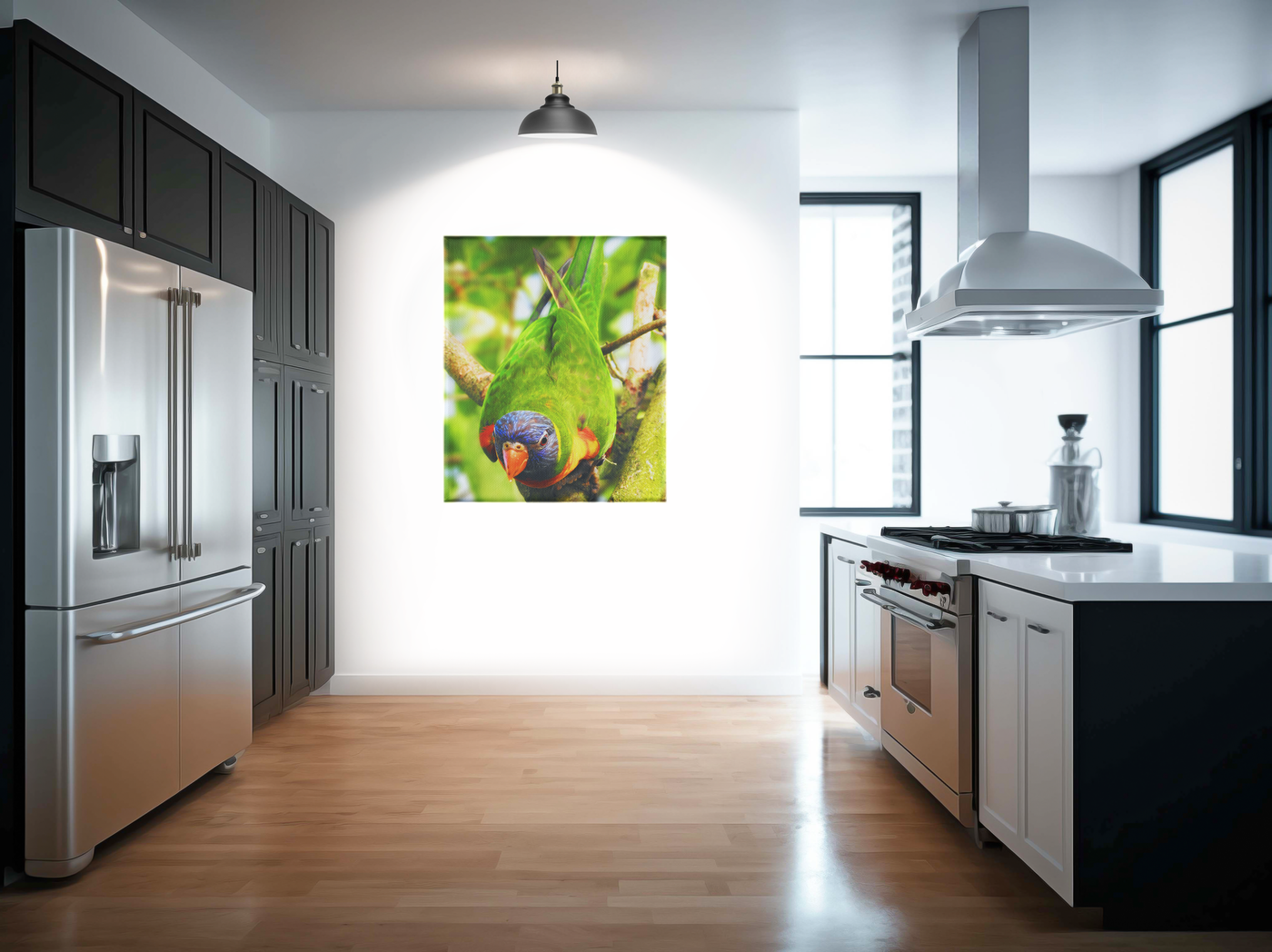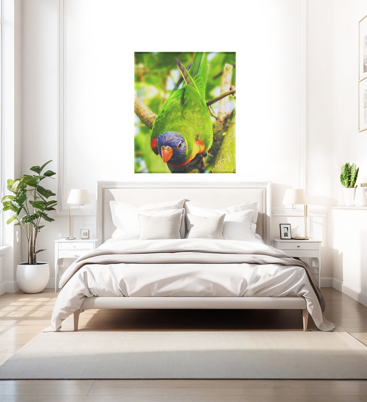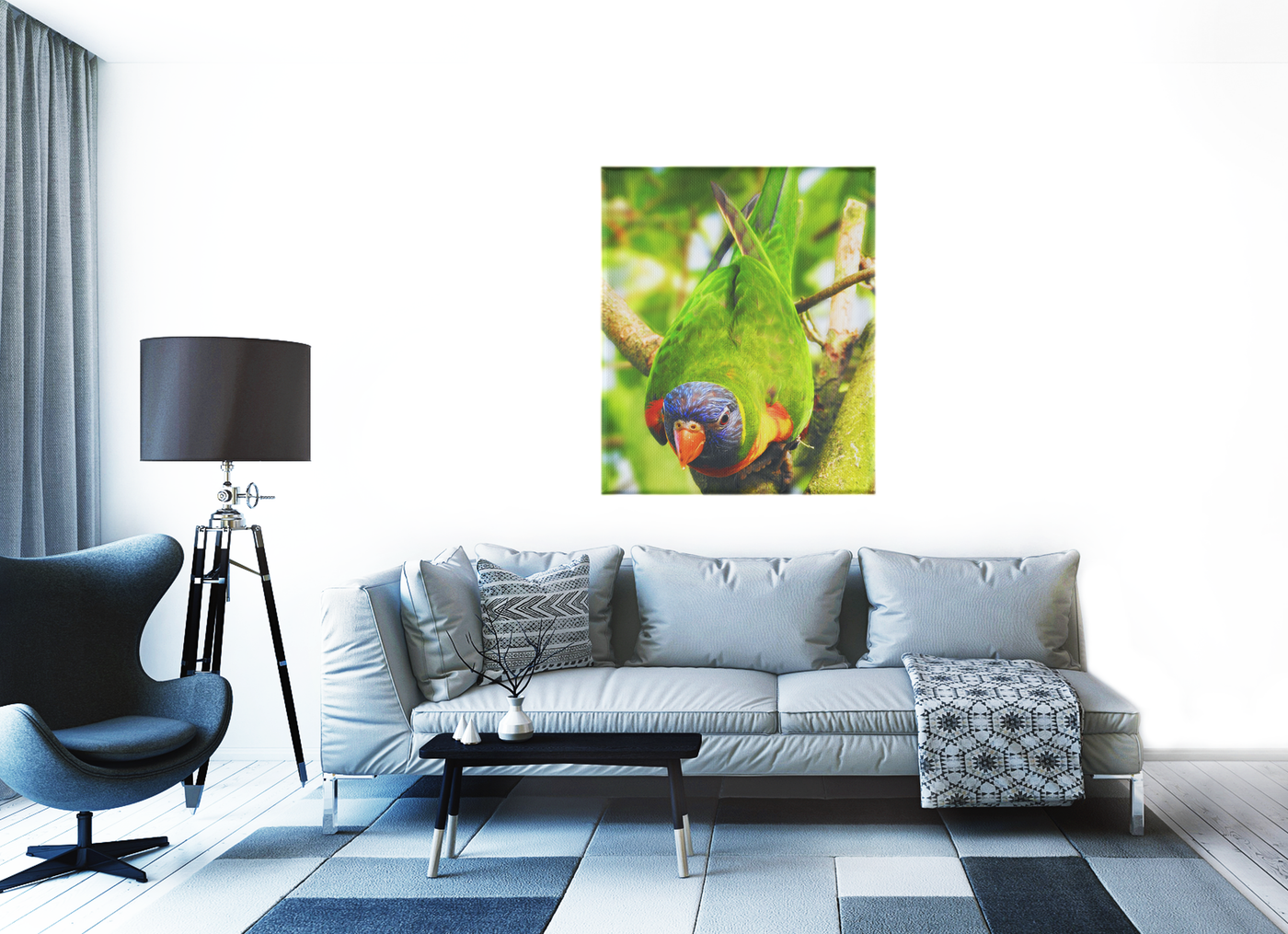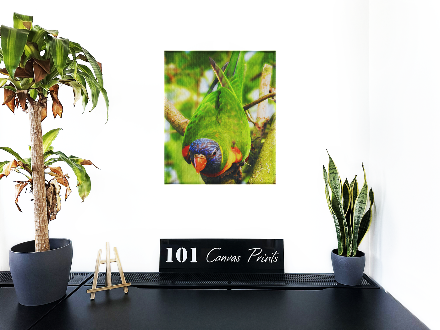 Our stunning Lorikeet Canvas print is a great way to add a splash of colour to your walls. Full of vibrant hues, the brilliant blue of this lorikeet's head would make it the focus in any room. A striking image, expertly printed on canvas for exceptional results.