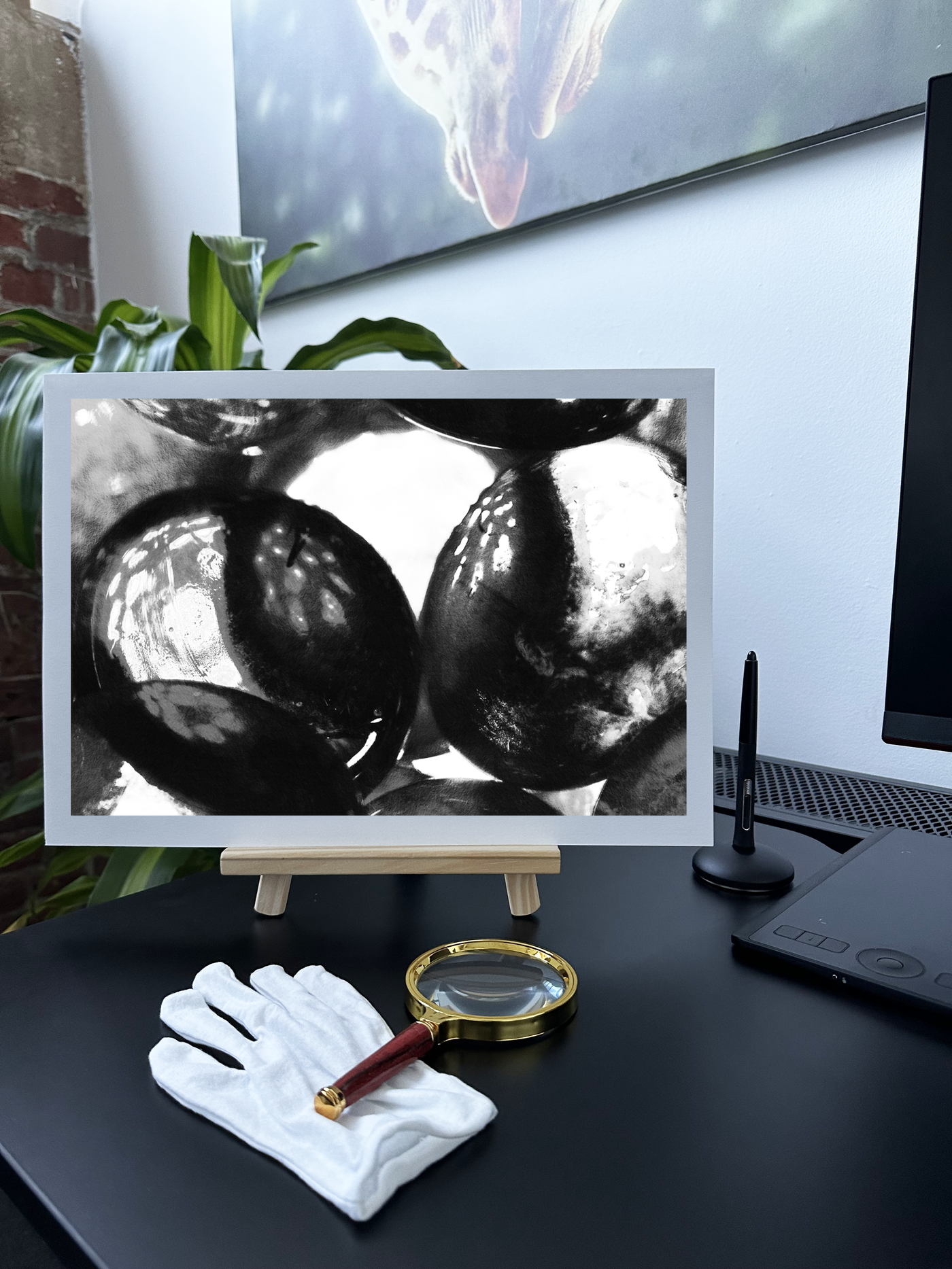 Our carefully handmade monochrome fine art prints are produced on Hahnemühle 308 matte cotton rag paper using Epson archival inks for exceptional detail and color accuracy. Each print features clean, precise edges and a textured surface that brings depth and richness to your chosen artwork, creating a gallery-worthy presentation.