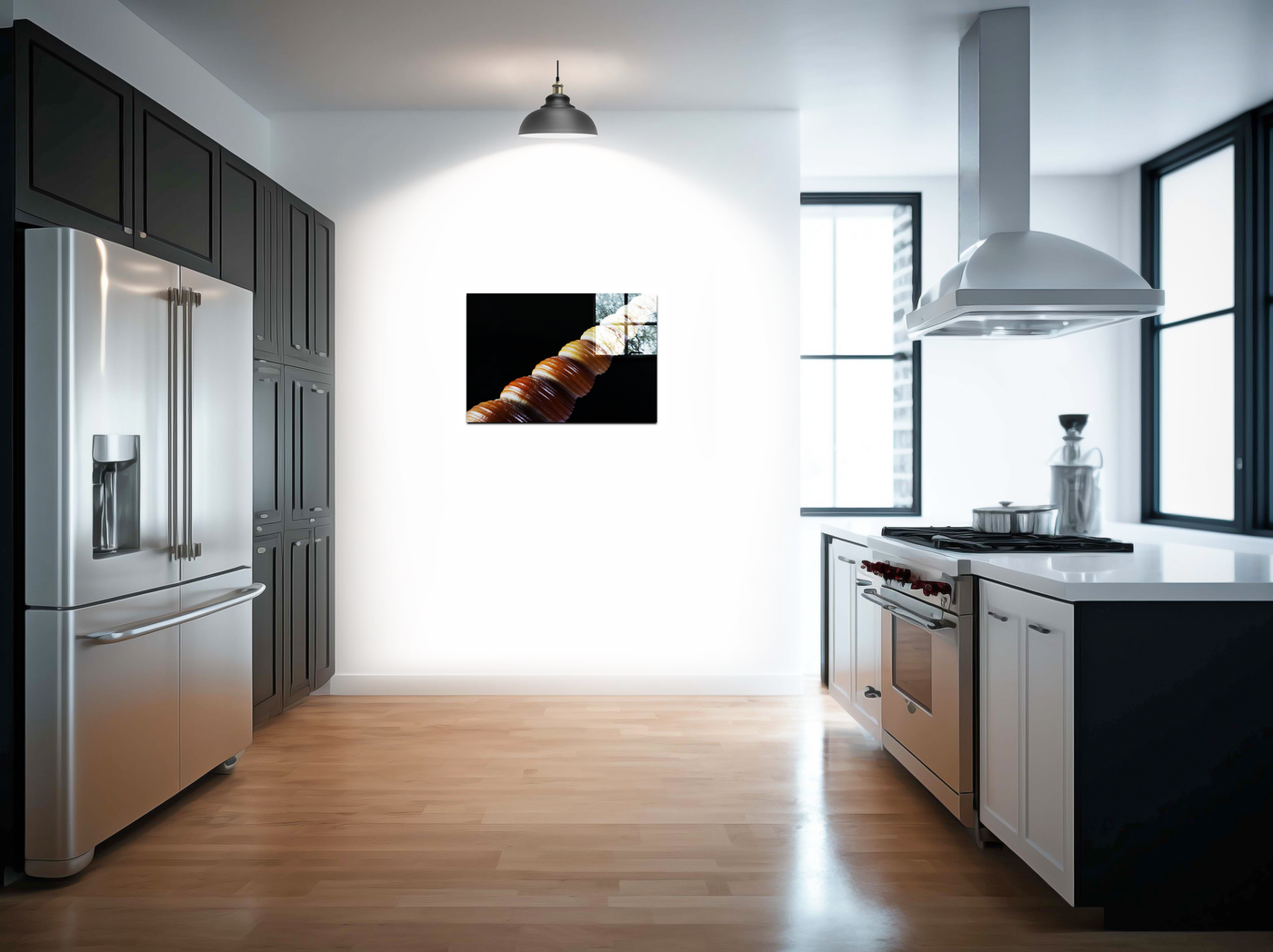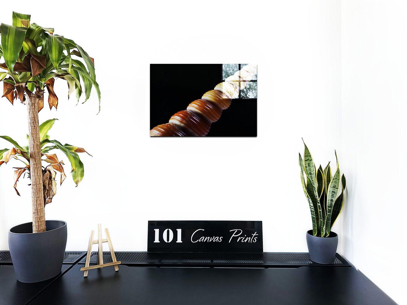 Angled on a dark background, the team have outdone themselves with this detailed Acrylic print. Notice how the position of the unicorn-like shell has showcased the depth of the mahogany, and its varying tawny to tan hues. The high-definition capture of the shell’s swirls shows a history of its growth and life.