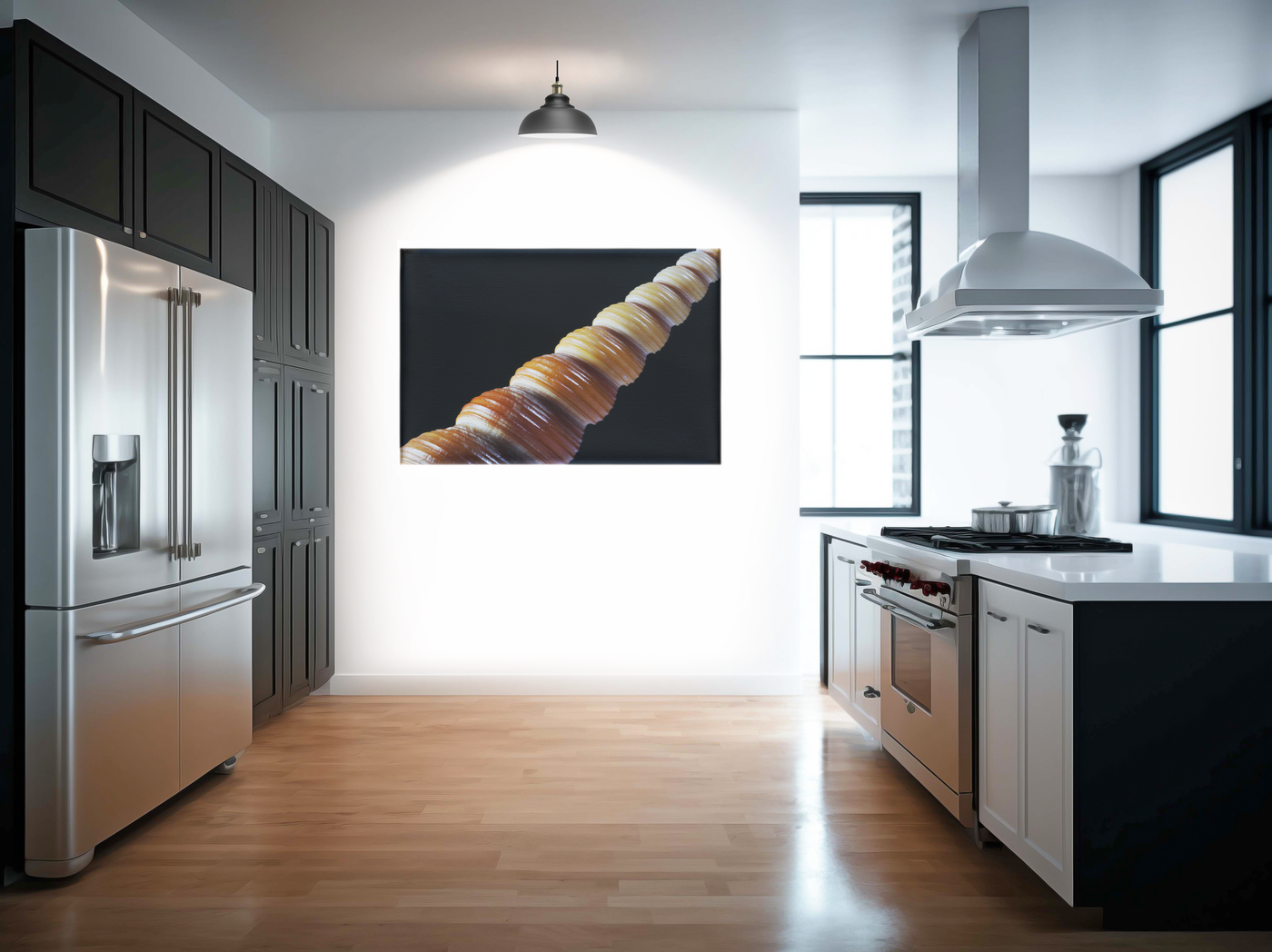 Angled on a dark background, the team have outdone themselves with this detailed Canvas Art print. Notice how the position of the unicorn-like shell has showcased the depth of the mahogany, and its varying tawny to tan hues. The high-definition capture of the shell’s swirls shows a history of its growth and life.