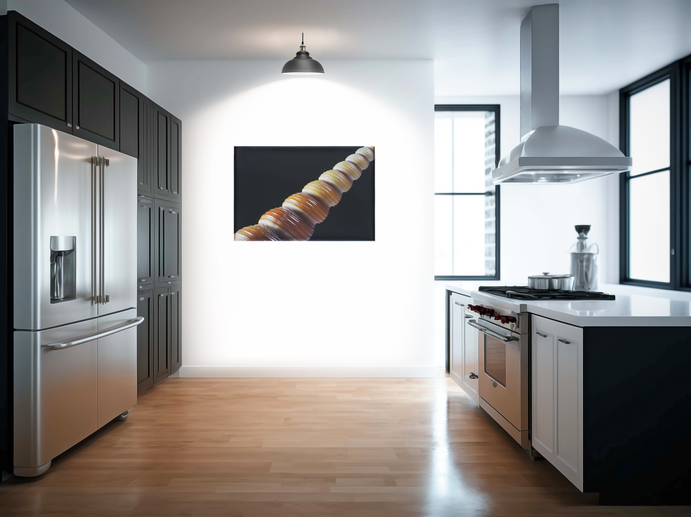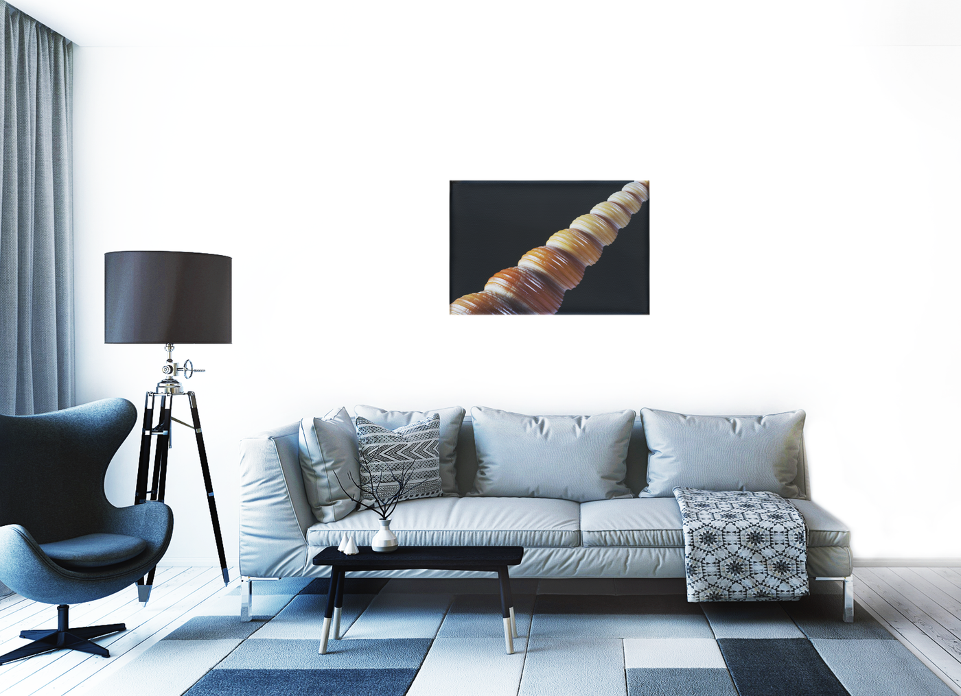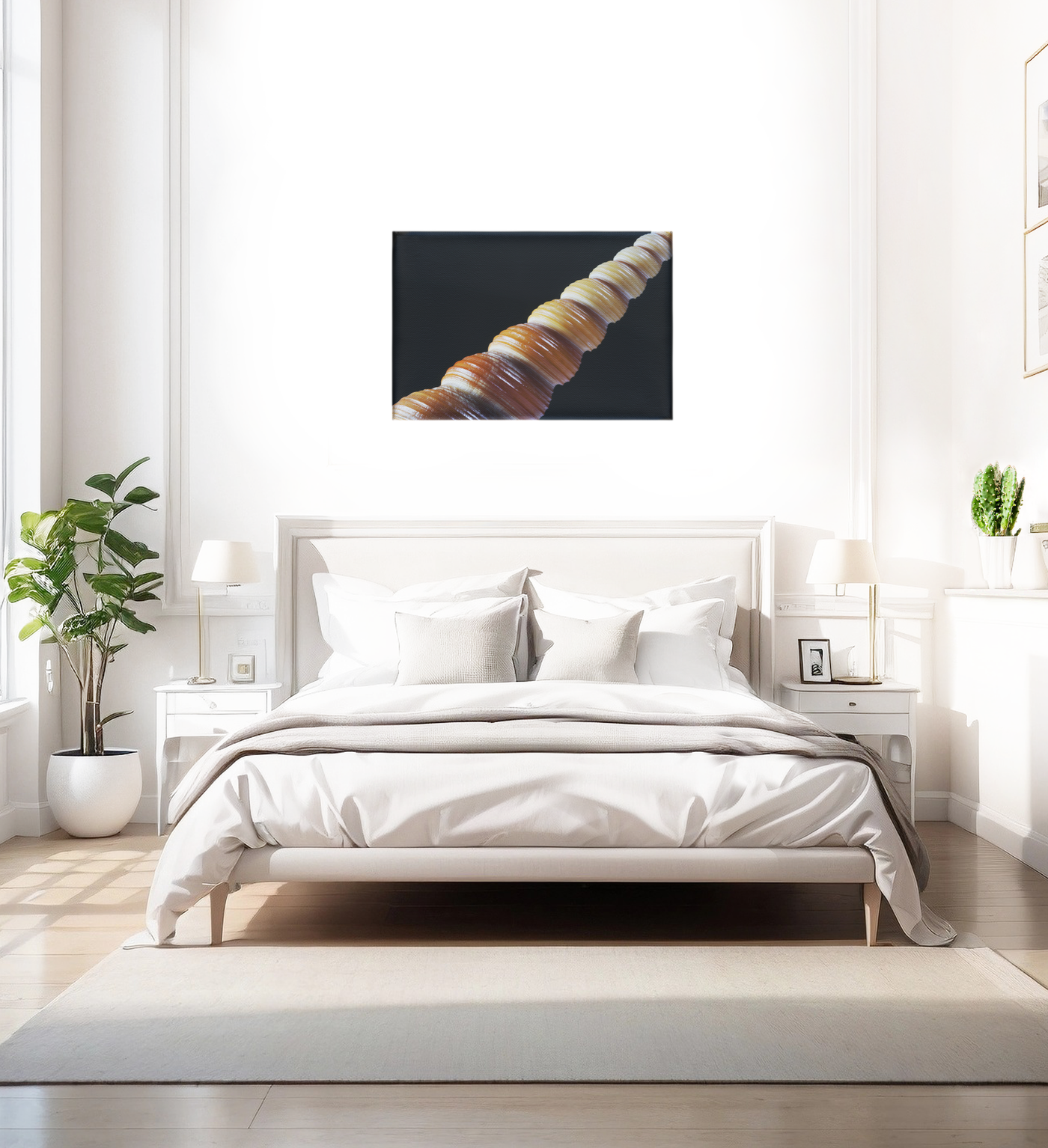 Angled on a dark background, the team have outdone themselves with this detailed Canvas Art print. Notice how the position of the unicorn-like shell has showcased the depth of the mahogany, and its varying tawny to tan hues. The high-definition capture of the shell’s swirls shows a history of its growth and life.
