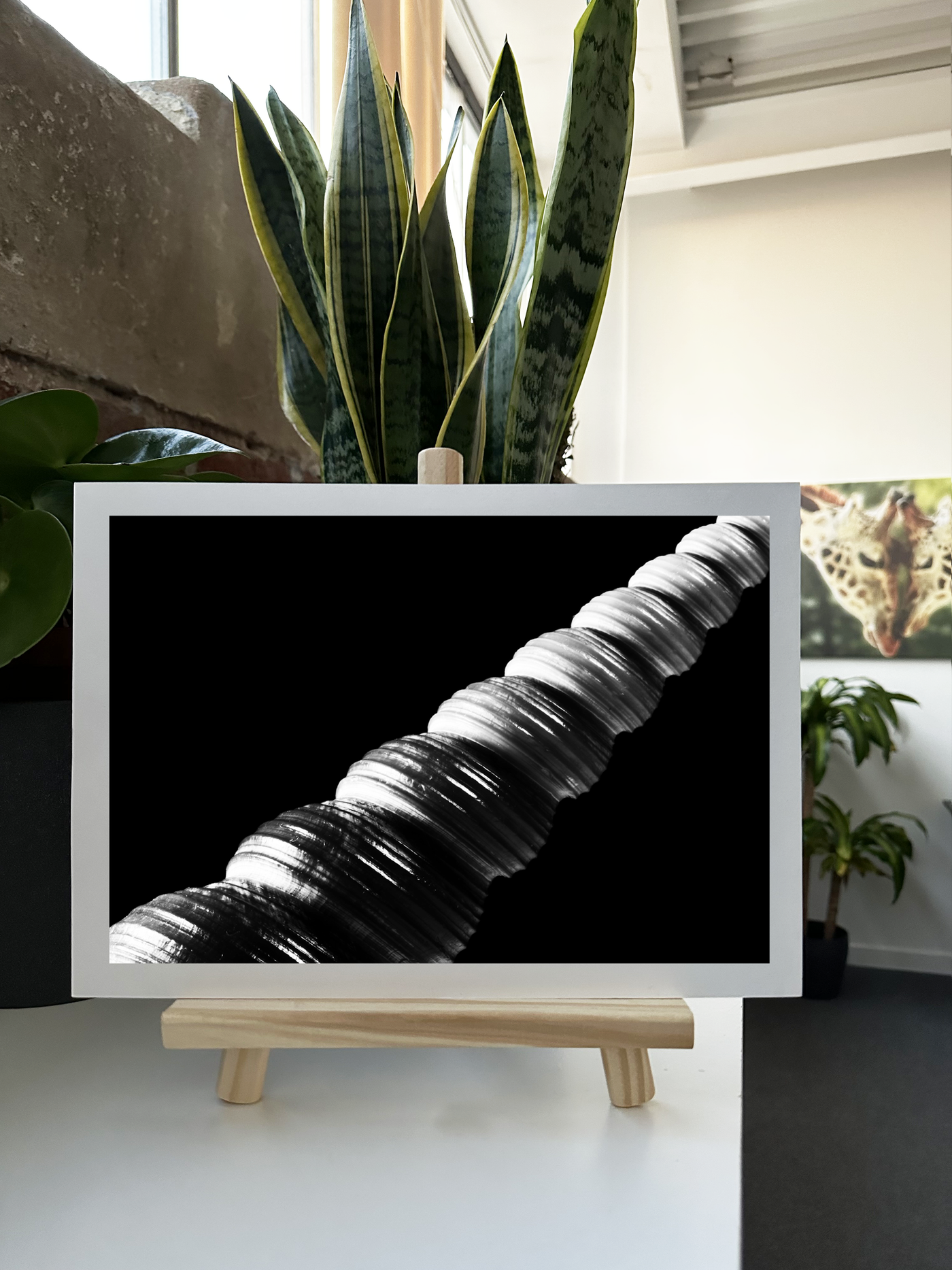 Angled on a dark background, the team have outdone themselves with this detailed Monochrome Fine Art print. Notice how the position of the unicorn-like shell has showcased the depth of the mahogany, and its varying tawny to tan hues. The high-definition capture of the shell’s swirls shows a history of its growth and life.