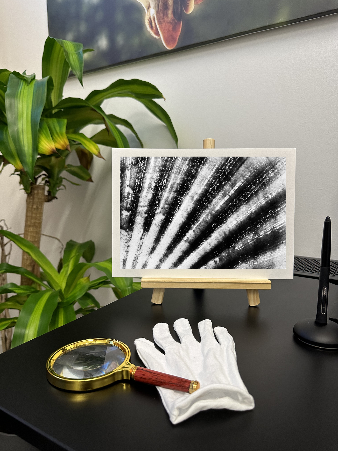 Our carefully handmade monochrome fine art prints are produced on Hahnemühle 308 matte cotton rag paper using Epson archival inks for exceptional detail and color accuracy. Each print features clean, precise edges and a textured surface that brings depth and richness to your chosen artwork, creating a gallery-worthy presentation.