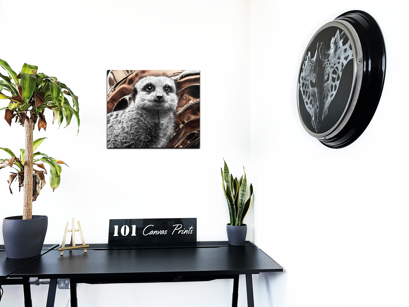 Add a pop of colour and personality to your space with a beautiful and adorable meerkat Acrylic print. Our high-resolution image captures the soft, sand-covered facial fur of this cute desert dweller as it curiously looks into the distance. The neutral grey palette makes this Acrylic print easy to integrate into any space, but its hard-to-resist charm makes it stand out.