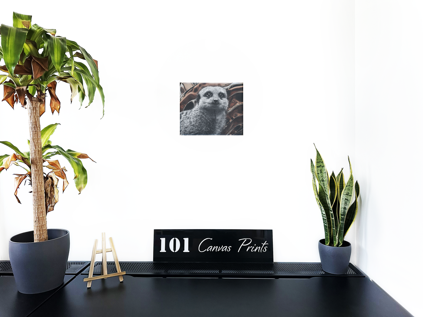 Add a pop of colour and personality to your space with a beautiful and adorable meerkat Canvas print. Our high-resolution image captures the soft, sand-covered facial fur of this cute desert dweller as it curiously looks into the distance. The neutral grey palette makes this Canvas print easy to integrate into any space, but its hard-to-resist charm makes it stand out.